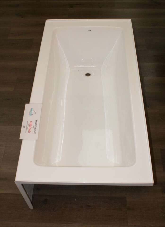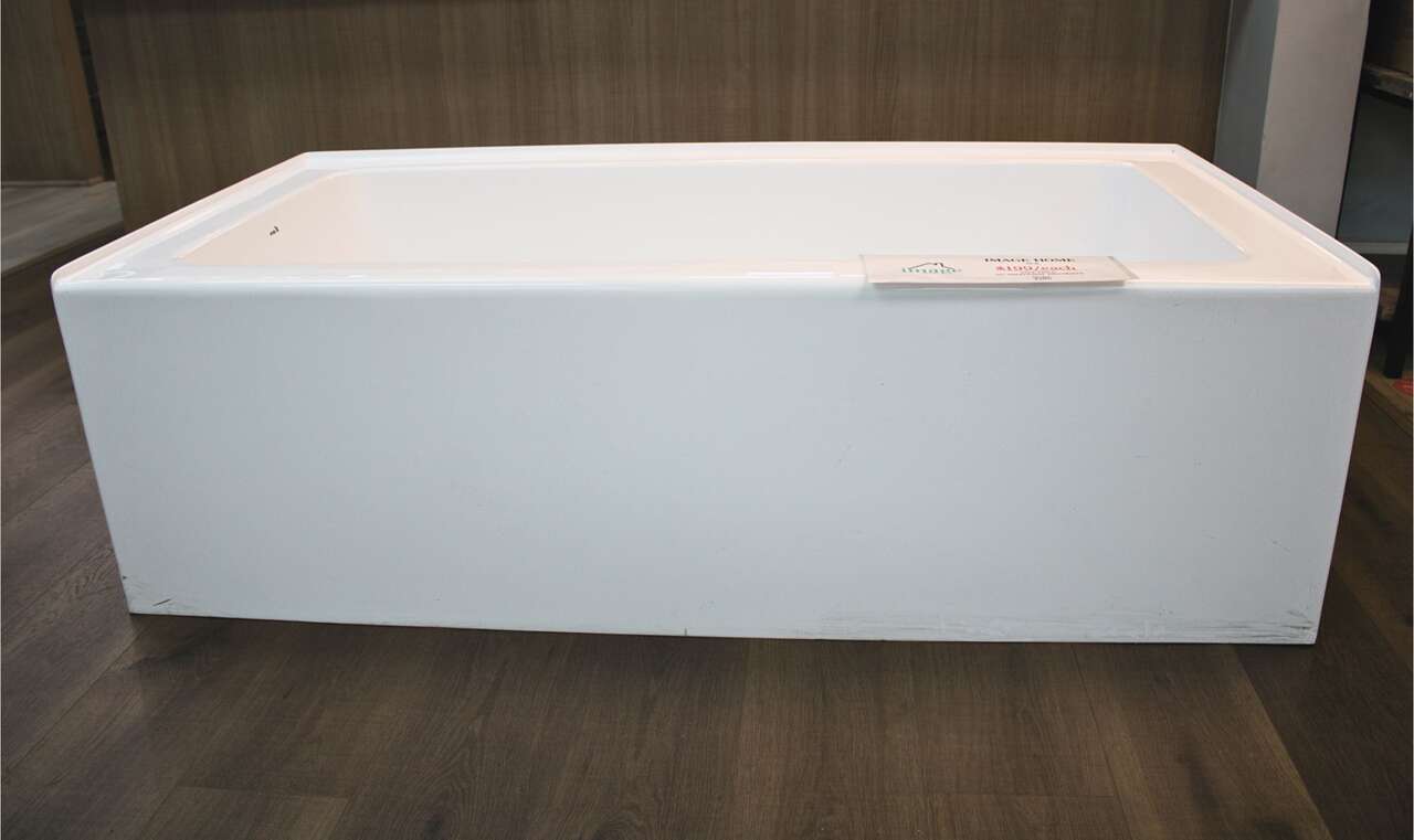 One piece acrylic body bathtub, without overflow (overflow hole is NOT precut). Open on the left side for plumbing. Measures 30" x 59.5" x 18.5"