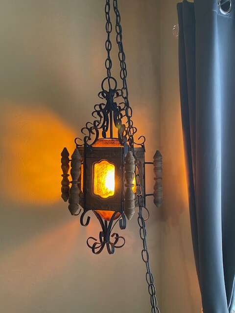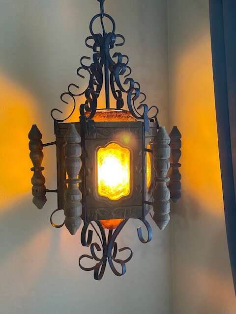 ApplePayVintage hanging wood lamp, excellent condition. Has long chain for hanging