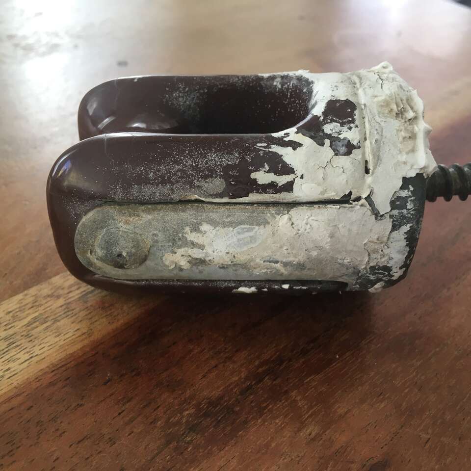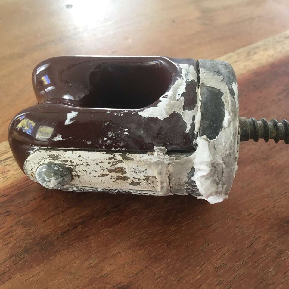 Insulator is in good condition. There are no chips or cracks. Paint and caulking present. See photos.