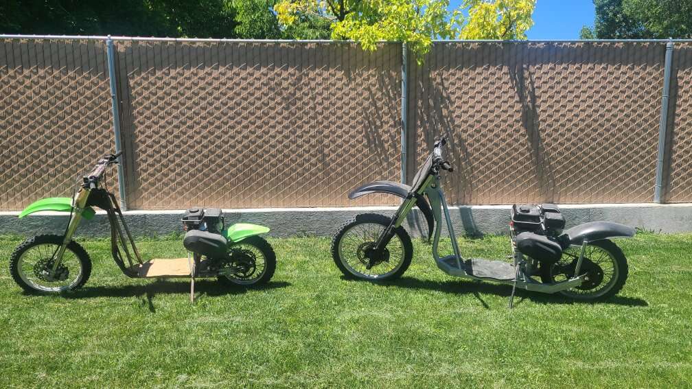 These have brought a lot of fun to our family, but it's time to give them a new home. They were built from old motorcycles. I just pulled them out today, and they started right up. Feel free to come take a look at them. Asked $1,200.00 for the smaller green one and $1,500.00 for the bigger black one. Or I'll part with both for$2,200.00.