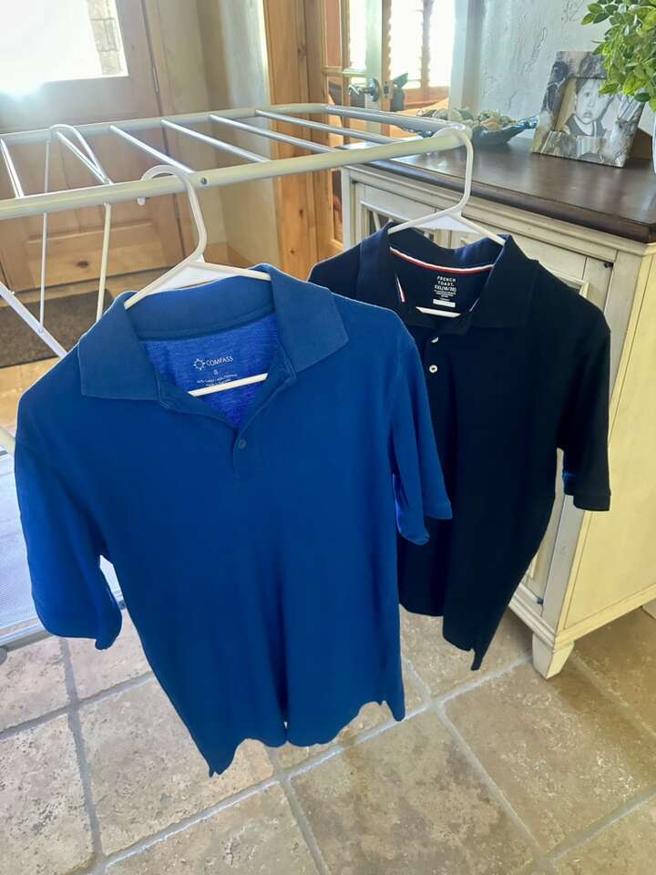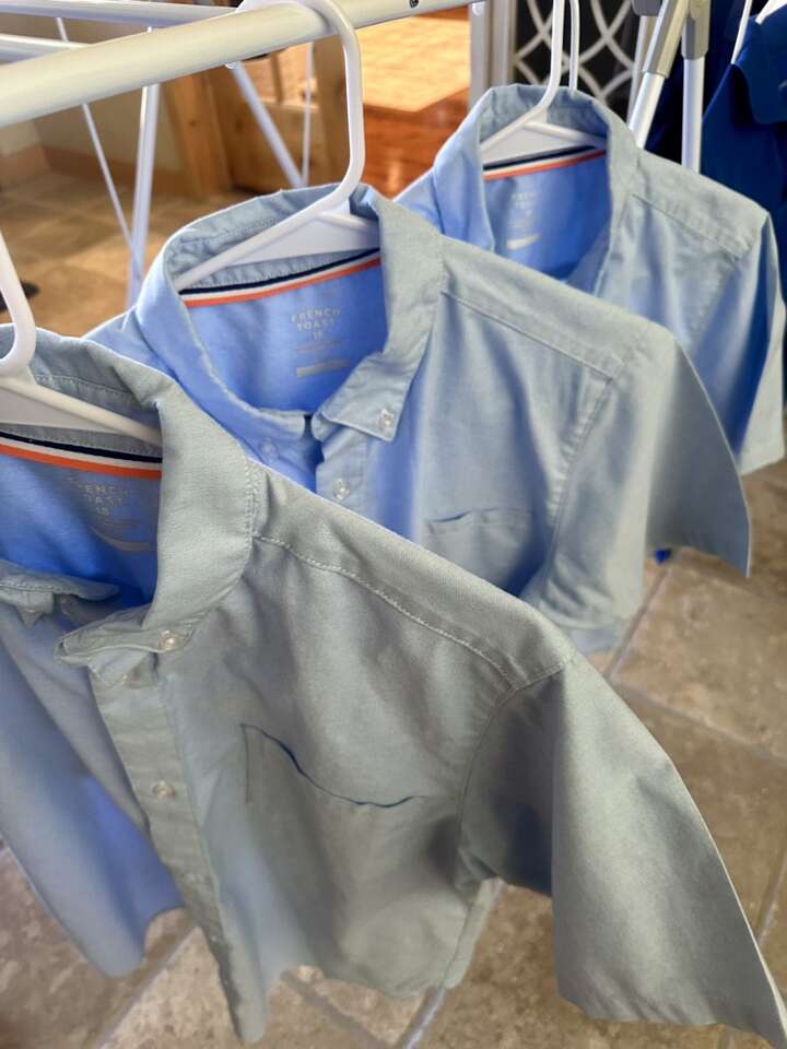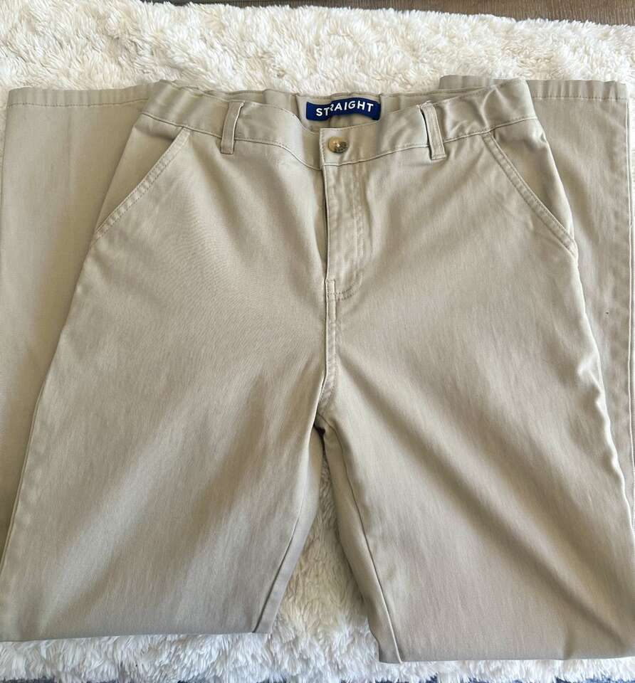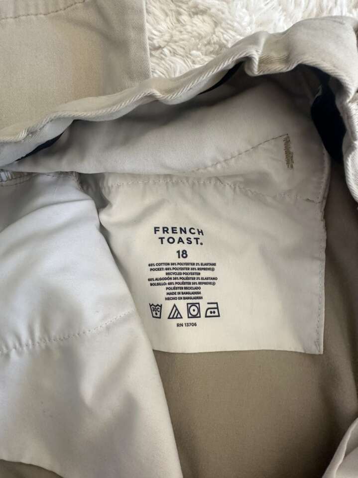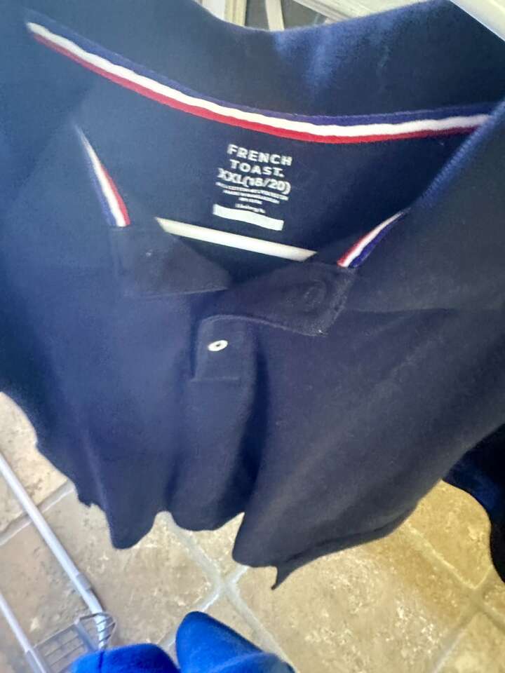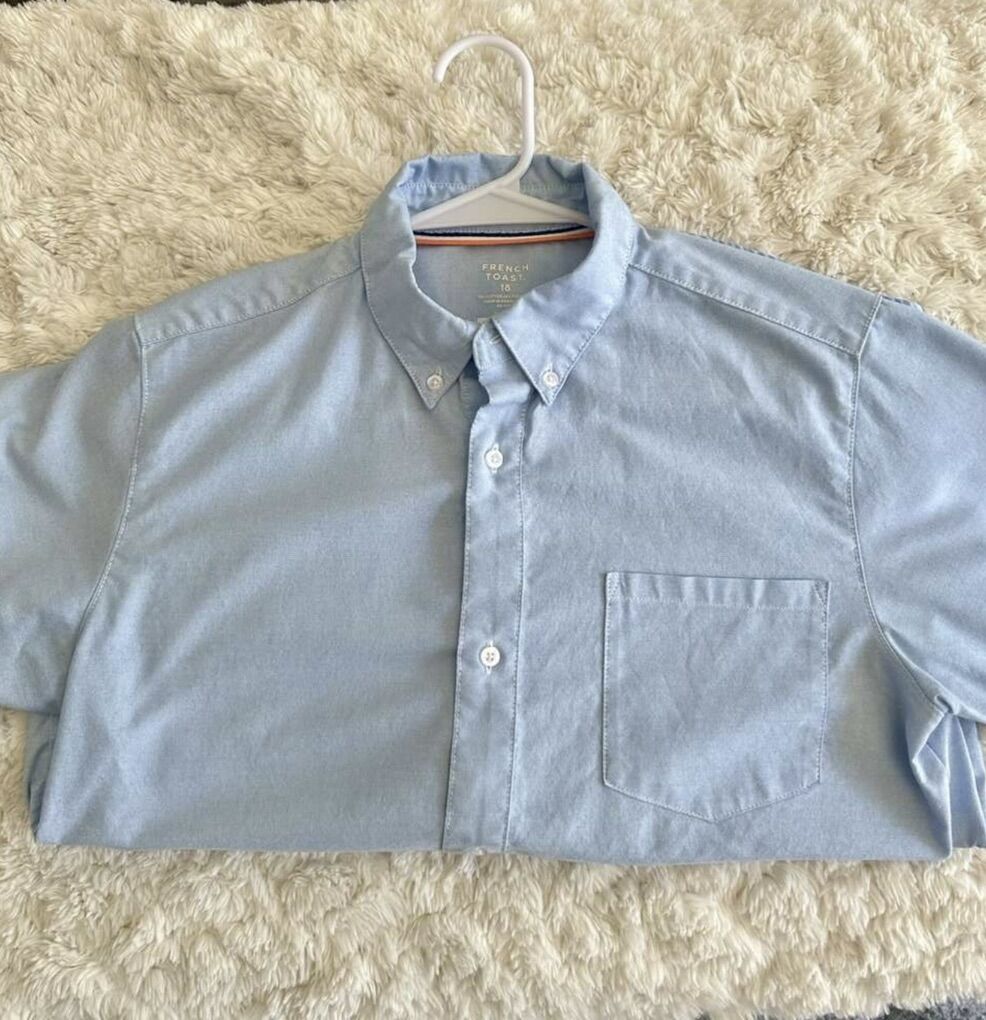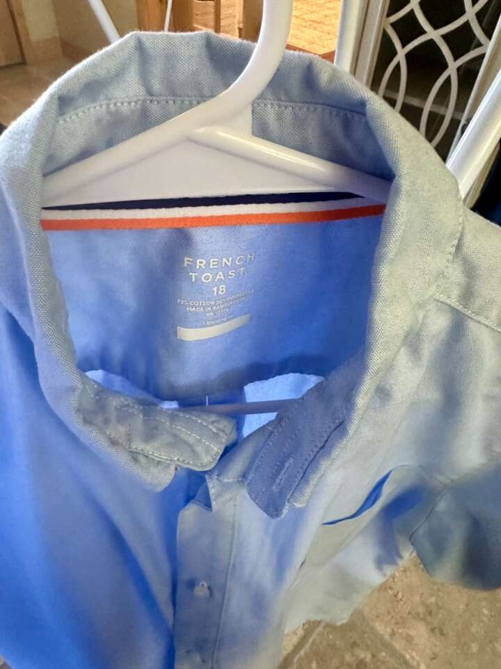 These are charter school approved uniforms. I am selling three Oxford shirts, one navy blue polo, and one royal blue polo. Size 18. Also selling five khaki pants size 18. These clothes are all in good condition. Washed and pressed every Sunday. French Toast brand uniforms runs rather small. My son was 14 and wore these for his eighth grade year.