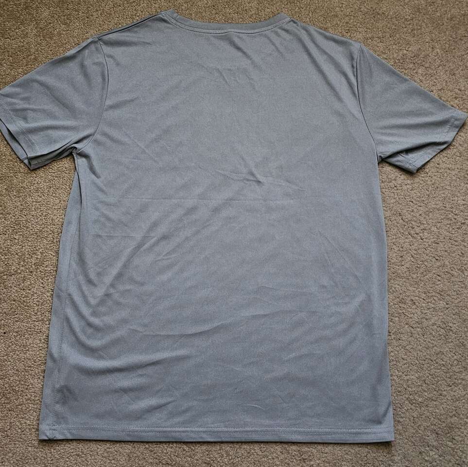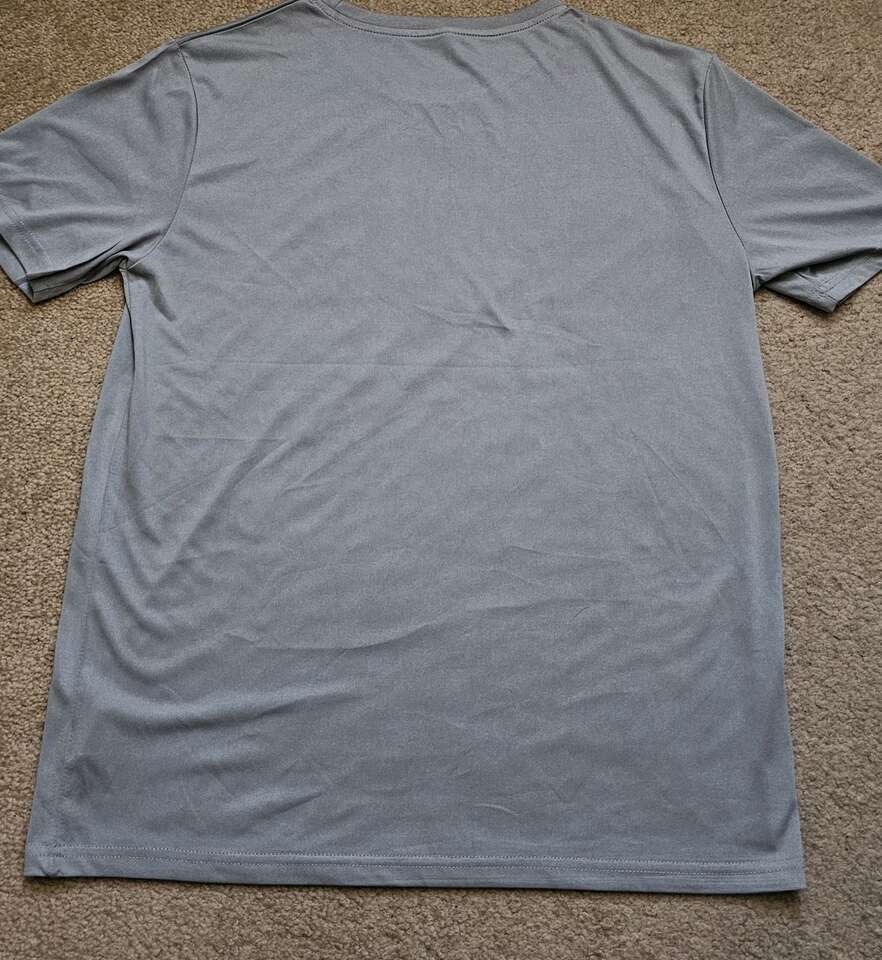 Shirt is breathable and comfortable. No rips, stains or tears. Please look at measurements to ensure fit. Shirt seems bigger than a small.