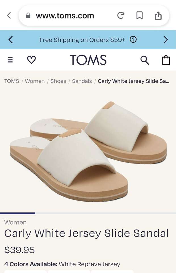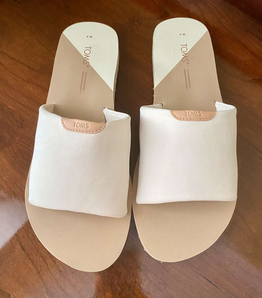 NEW TOMS Carly White Jersey Slide Womens Sandals/Slippers - SZ 9 - Sells On Website 4 $40 - See All Pix. Brand new and the fabric top is so soft!