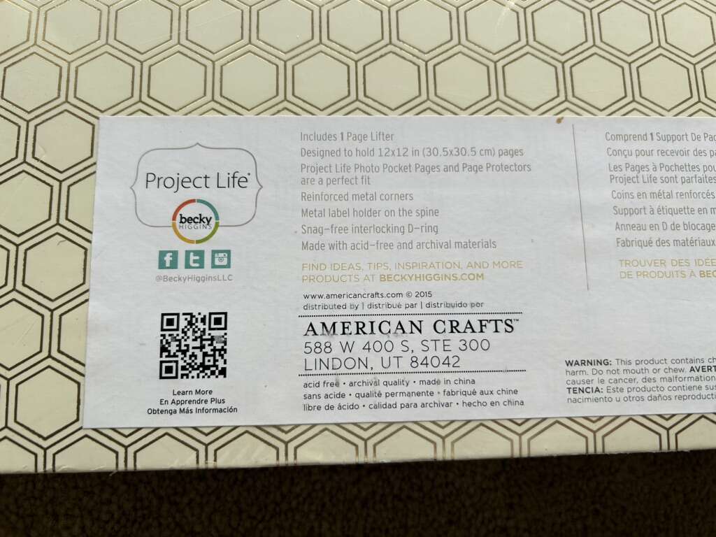 NEW (sealed in plastic) Project Life Honeycomb 12x12 scrapbooking binder, with a gold honeycomb pattern. By Becky Higgins, American Crafts. High-quality binder, new, unopened condition. Text only. Cash or Venmo.
