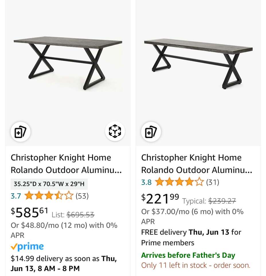 Table only bench pictured no longer available but can still be purchased on Amazon.