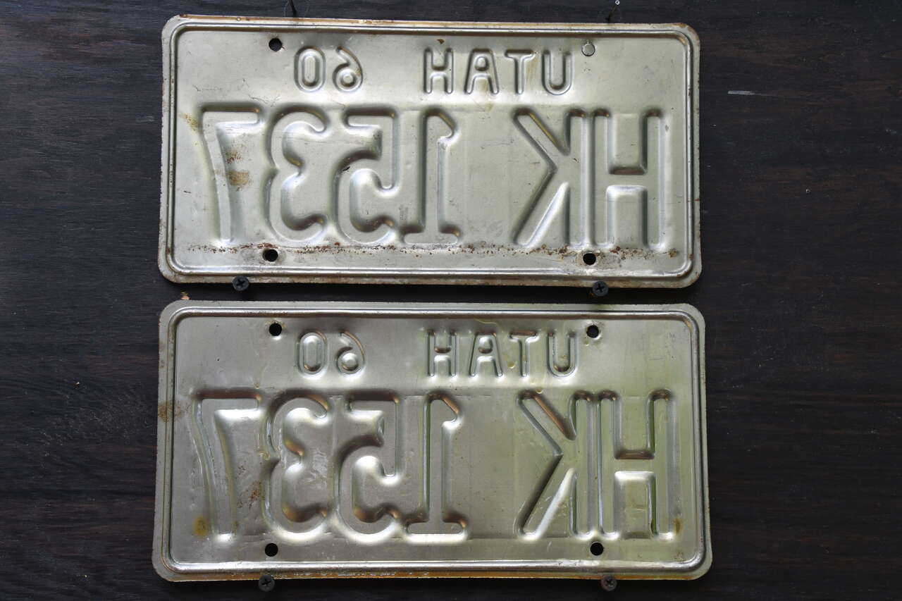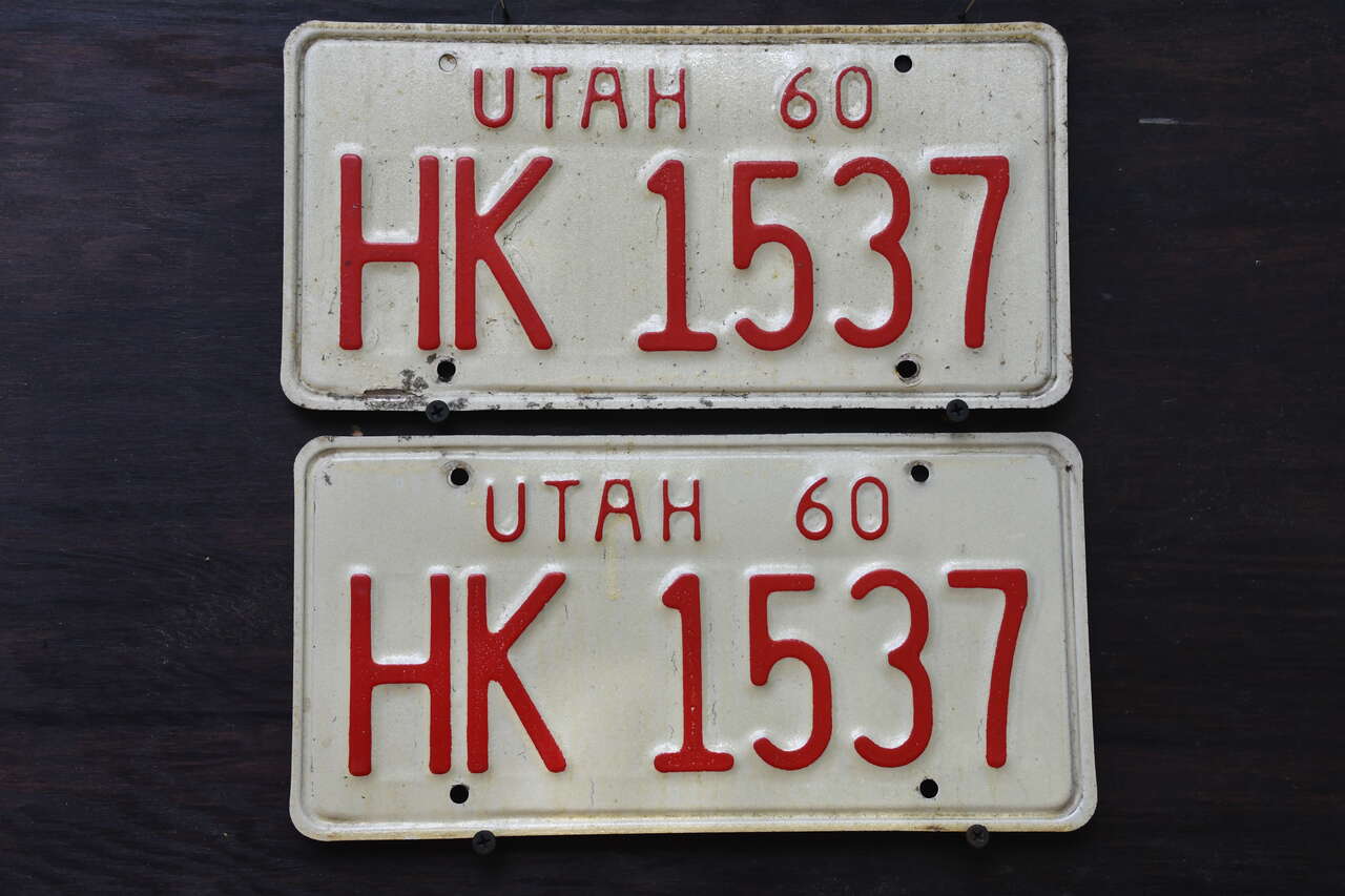 Utah 1960 Original License Plate Pair HK 1537. These are the rare experimental plates with the reflective coating.