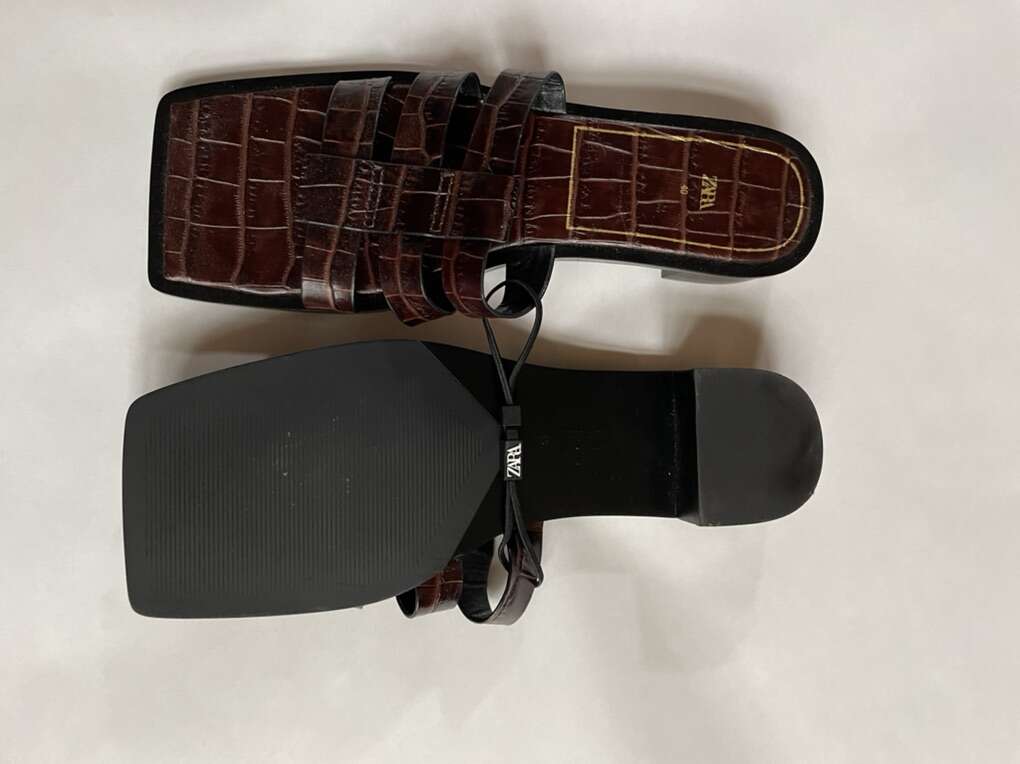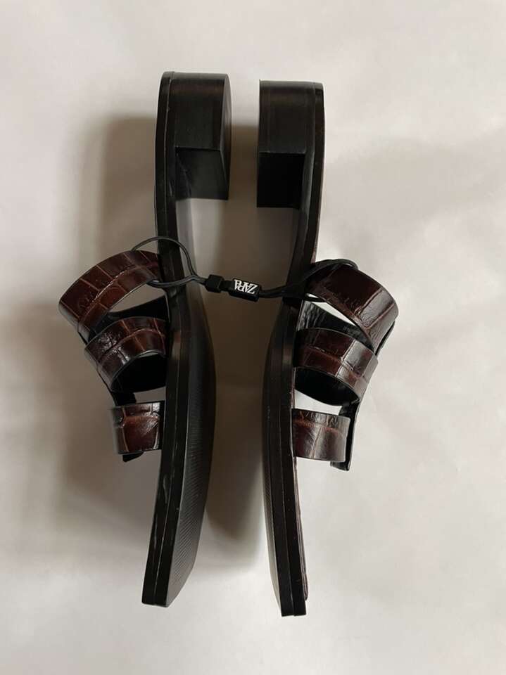 New and unique, Zara Women Leather Flat Sandals Size 9 In Brown.