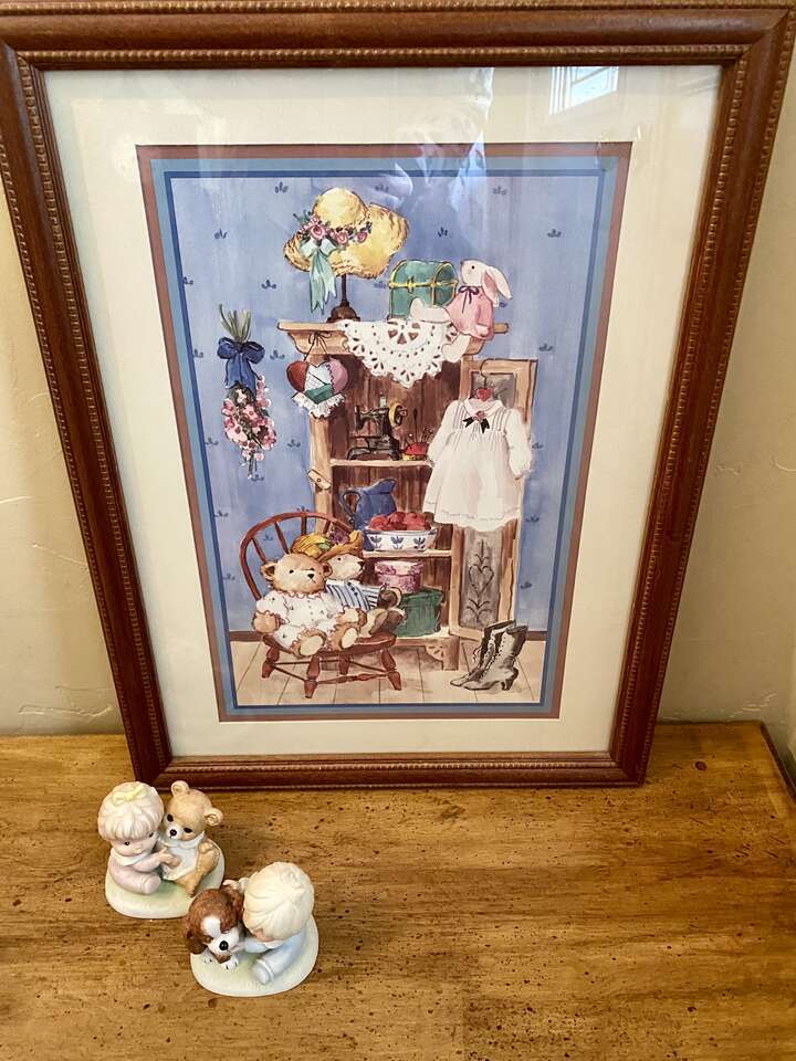 LIKE NEW - Vintage HOMECO Porcelain Figurines PLUS A Large 16x21 Attic Treasures Picture - C PIX . This would make a great gift for someone expecting a baby. Nursery. Antique Collectables. Sold separately for $12 each.