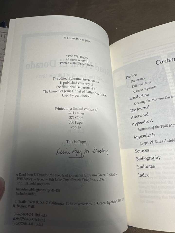 Edited by Will Bagley; Signed by Bagley.