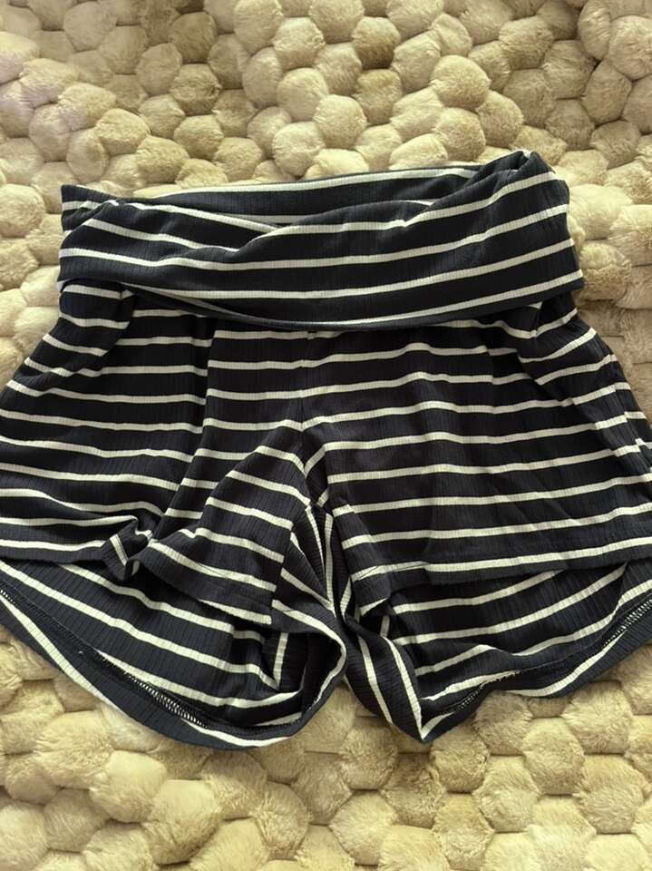 High waisted shorts can be folded over or pulled up over tummy. The have pockets which is so helpful!