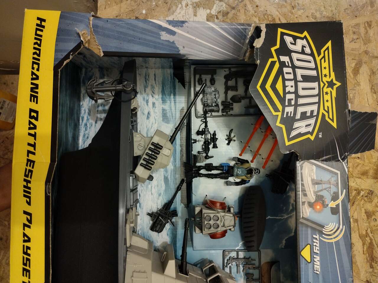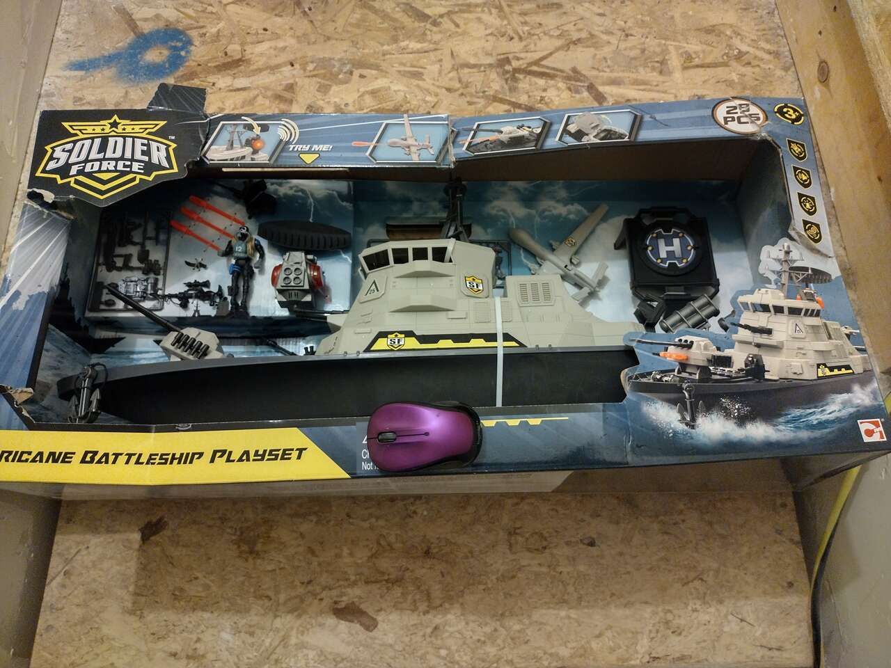 VenmoI have a new in box Soldier Force Hurricane Battleship for sale. These are hard to find, especially the bigger ones like this. They want 40.00 to 50.00 dollars for just the battleship on Ebay, this is Brand new with all the accessories. The box is kind of beaten up but everything is there. There is also a picture with a computer mouse just to show the actual size of this toy.