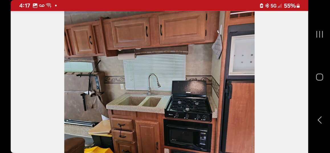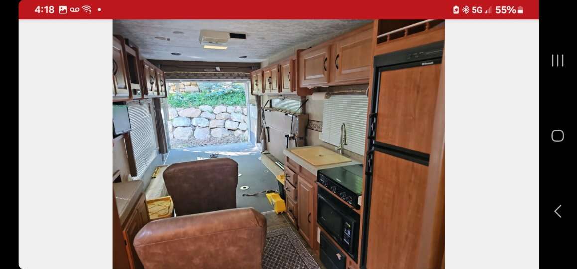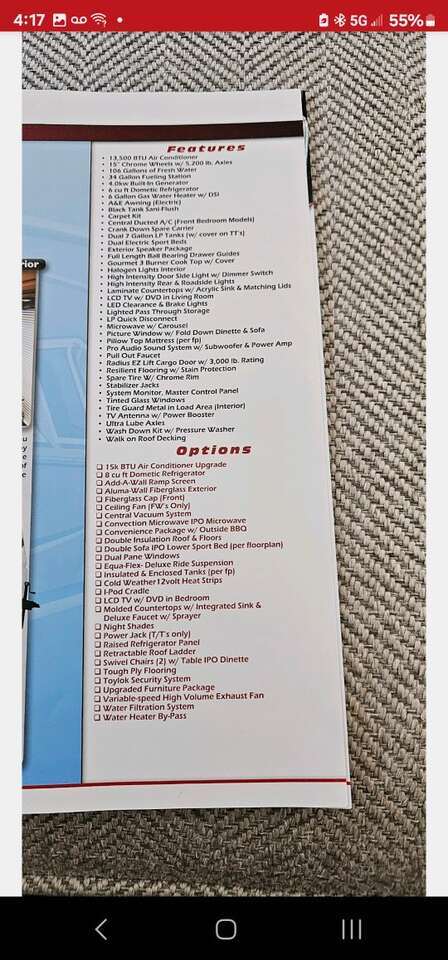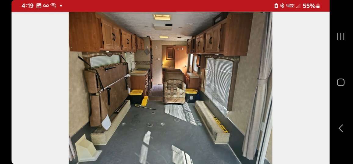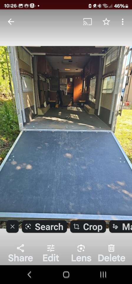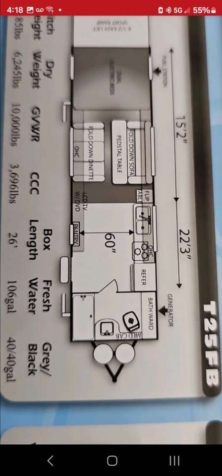 This is a 25 ft bumper pull that is really a quality toyhauler. Onan 4000 generator (380hrs) My 72 in wide 14.5 ft long Turbo S fits in 15ft plus garage. Has HEAT,AC, 2 QUEEN BEDS, SOFA BED, FULL BATHROOM, FULL KITCHEN, 35 gallon GAS TANK WITH PUMP, power awning, power bumper hitch, 2 CHAIRS, AM FM CD and much more