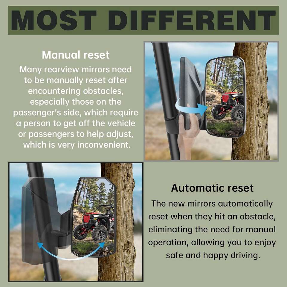 Zelle2024 Newly designed and manufactured UTV mirrors with spring-return feature easily reset to the previously set position after folding, eliminating the need to manually pivot, while improving passenger-side viewing angle for improved driving experience and safety (2-pack)