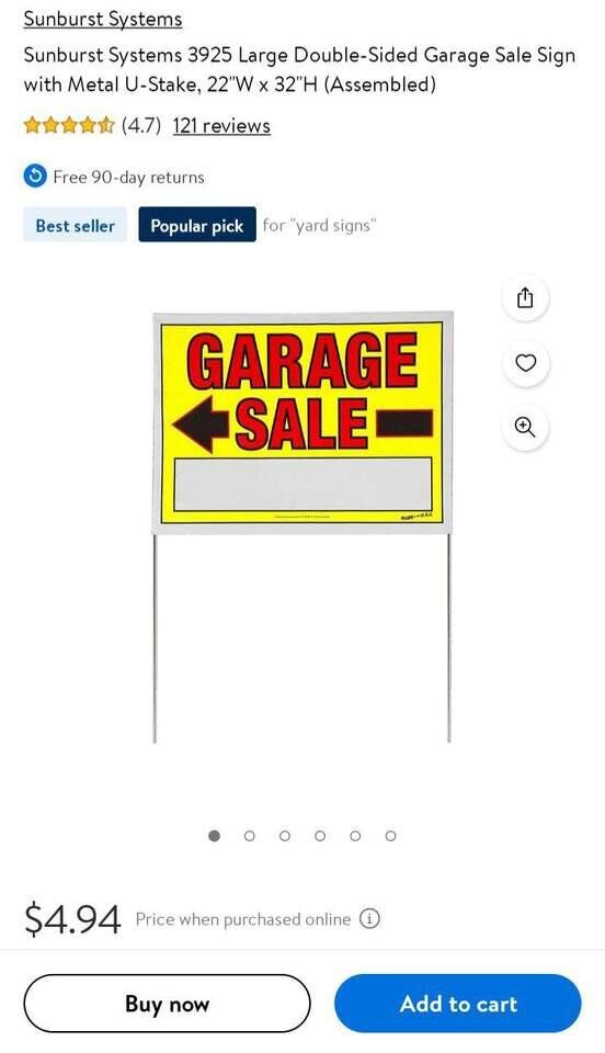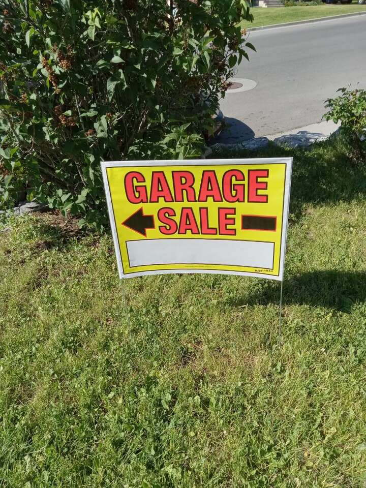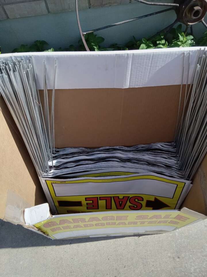 These are large sized plastic signs (that will endure wind, snow, and rain for many uses) with high visibility colors and sturdy metal poles. They are normally $4.94 each at Walmart. We're asking only $3.00 each or 4 for $10. We have plenty of them at the time we placed this ad, but get what you need before they are gone.