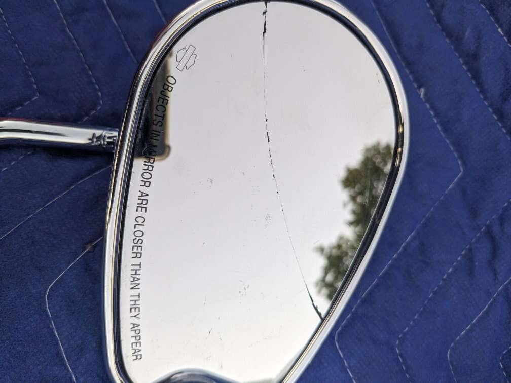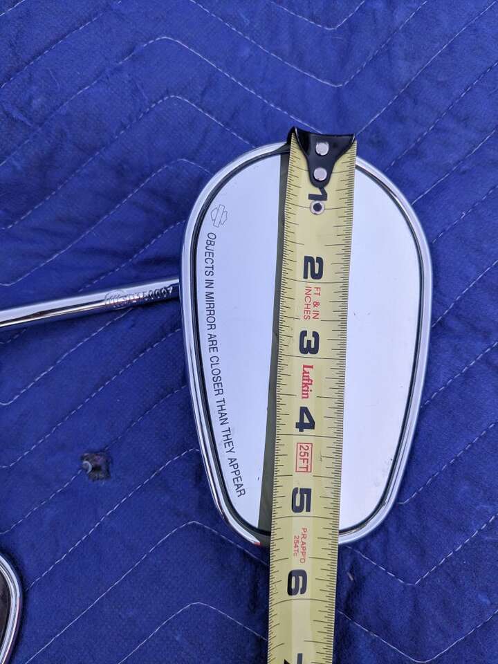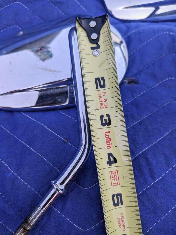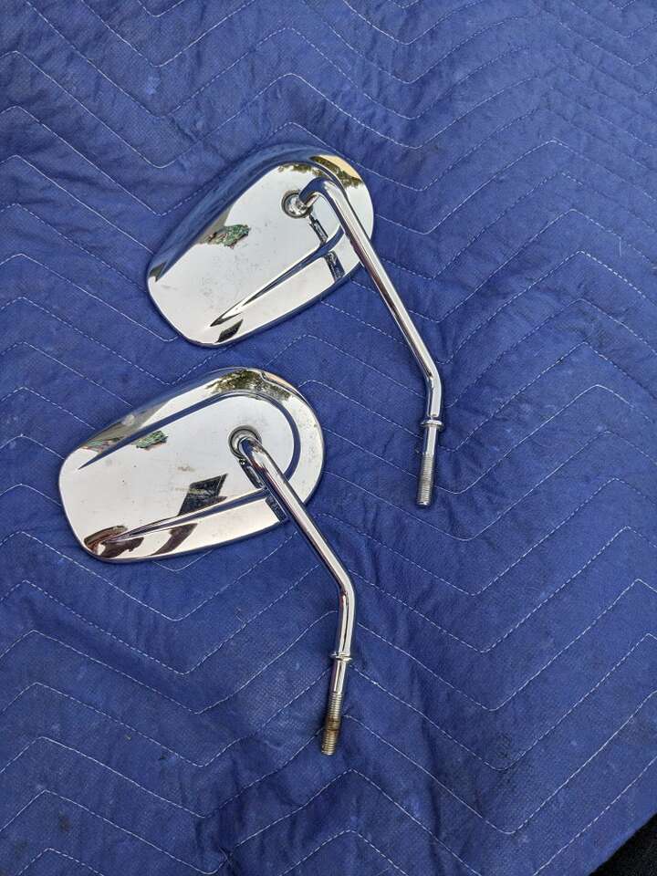 Both mirrors are for the right side. One is a long stem and one is a short stem. The short stem has a small crack but does not distort your view. They are from Harley Davidson with the authentic logo. They sell for $50 per mirror brand new. Asking $30 for each one. Message or text with any questions.