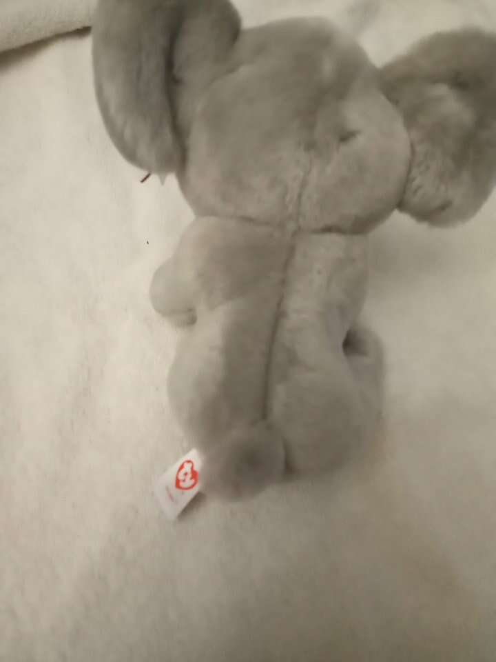 The character family of this beanie baby is Ty Babies, and it is classified under the Beanbag Plush category, specifically, the Beanie Babies-Original-Retired collection. The brand is Ty, and it was released in 2018. Although there is a small tear in the tag, this does not affect the overall quality of the product. Add this adorable little elephant to your collection today!