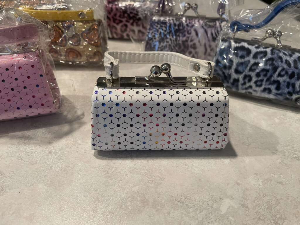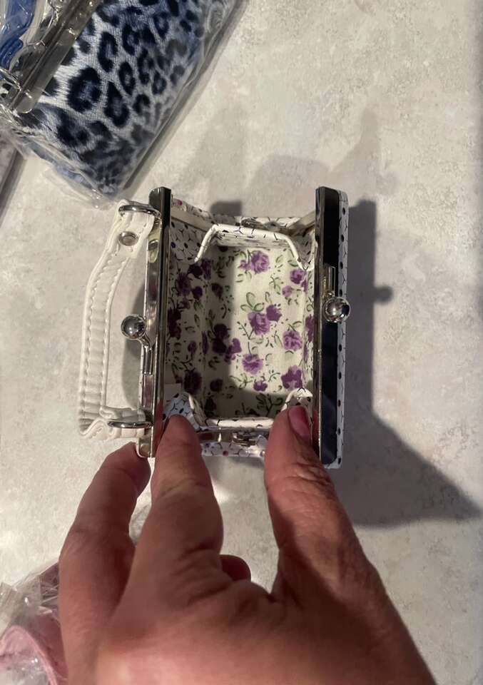 These darling little purses are a perfect party favor. Roughly 3 3/4” long, 2” high, and 1 3/4” wide. Open up to roughly 3”. Never used. $20 for 12.