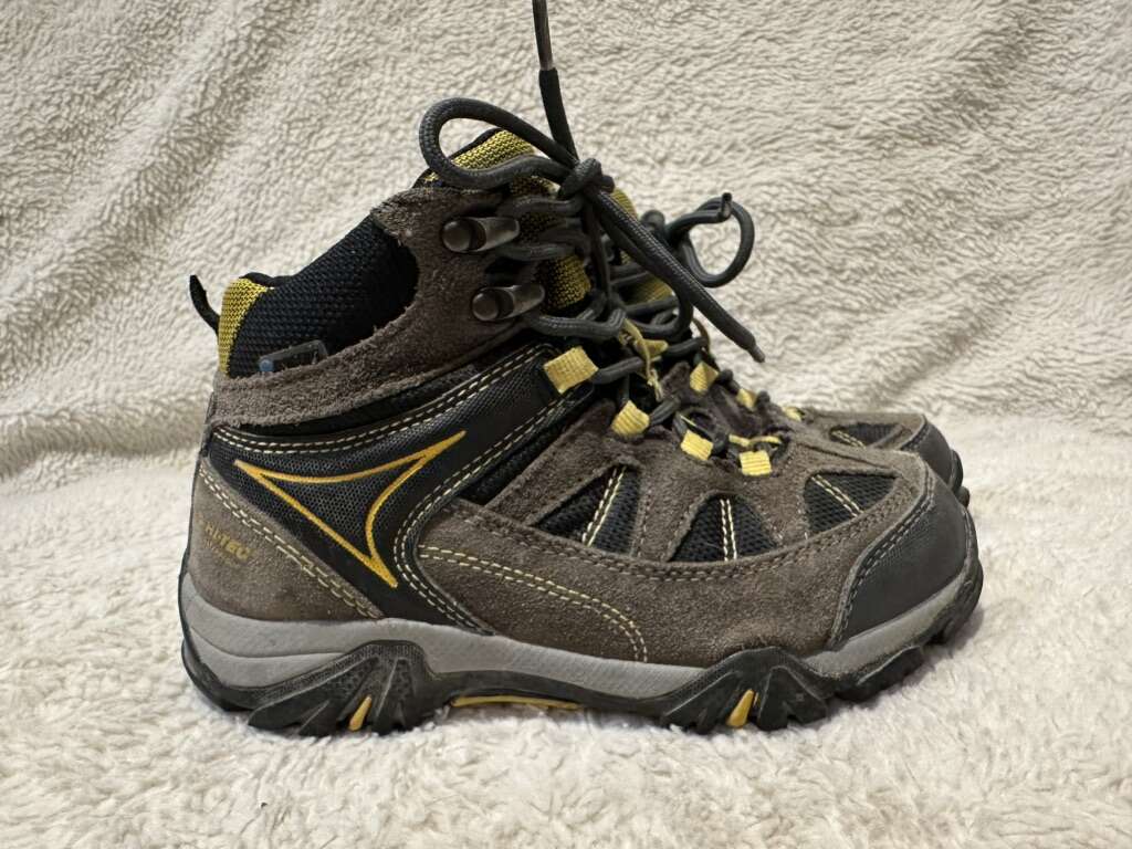 Hi-Tec toddler size 13 gray/black with yellow trim waterproof mid hiking boots. These are in good condition, see photos for details. I take cash or Venmo but cash is preferred. Text is best. 801-201-4446. Check out my other ads for additional sizes and styles.