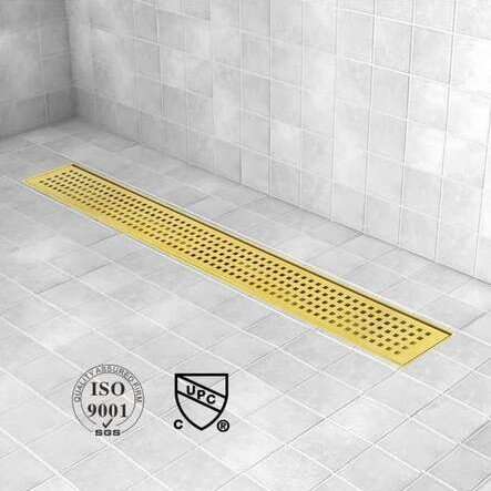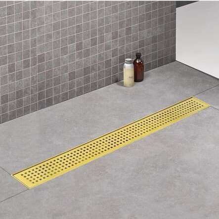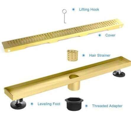 Linear Shower Drain, Gold Shower Drain 60 inch with Removable Grate Cover, PVD AISI 304 Stainless Steel Gold Shower Floor Drain, Shower Drain with Hair Catcher and Leveling Feet