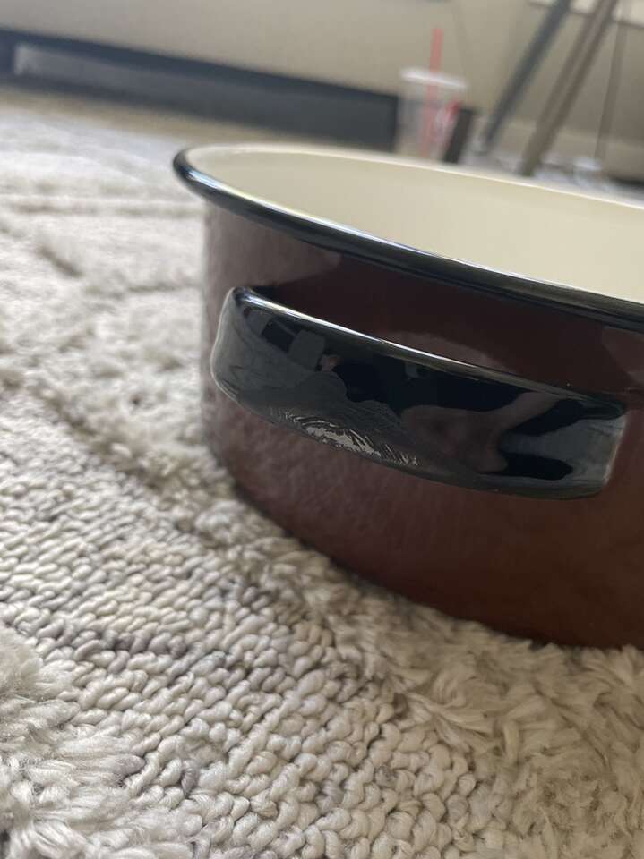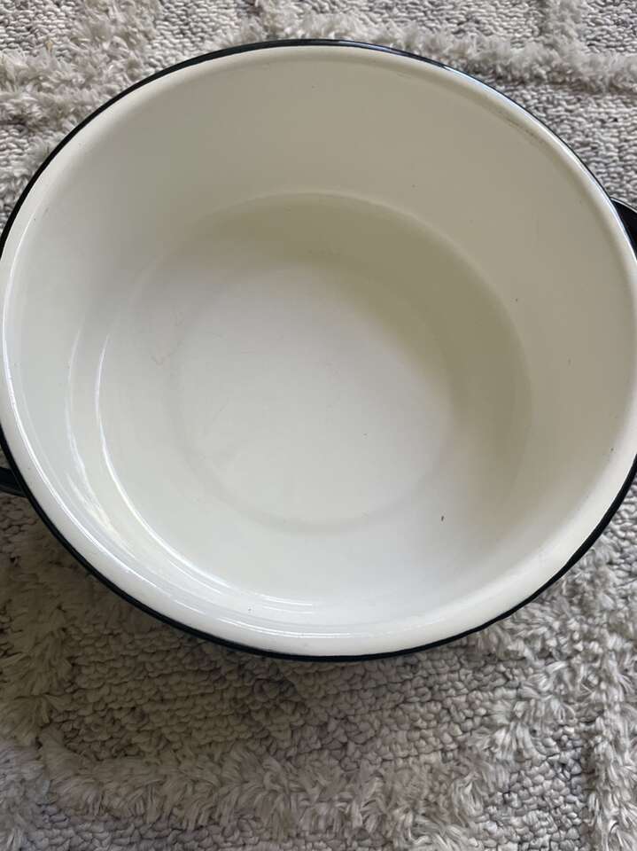 Vintage 70s Brown White Enamelware woodland stockpot and sauté pan