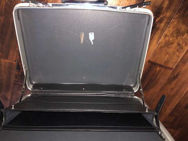 This Vintage locking Hard shell brief case is from the 70s and is in excellent condition. Key included and both locks work as they should. $45.00.. Cash Only... No Checks... No Venmo