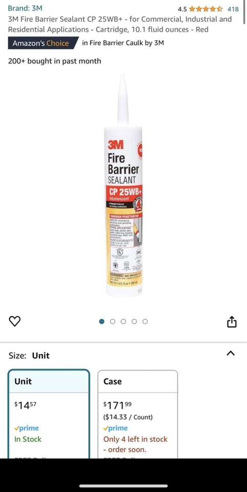 4 tubes 3M Fire Barrier Sealant CP 25WB+ - for Commercial, Industrial and Residential- red