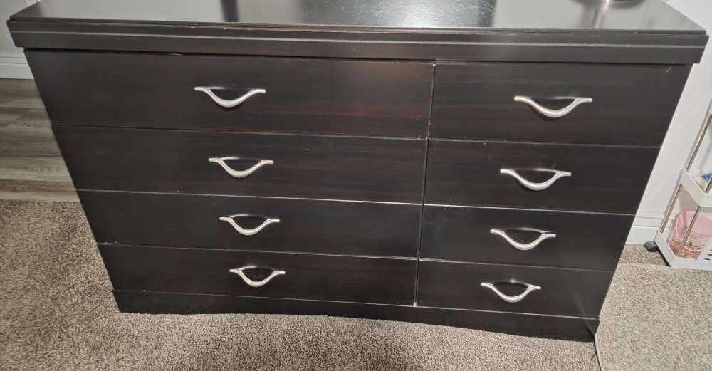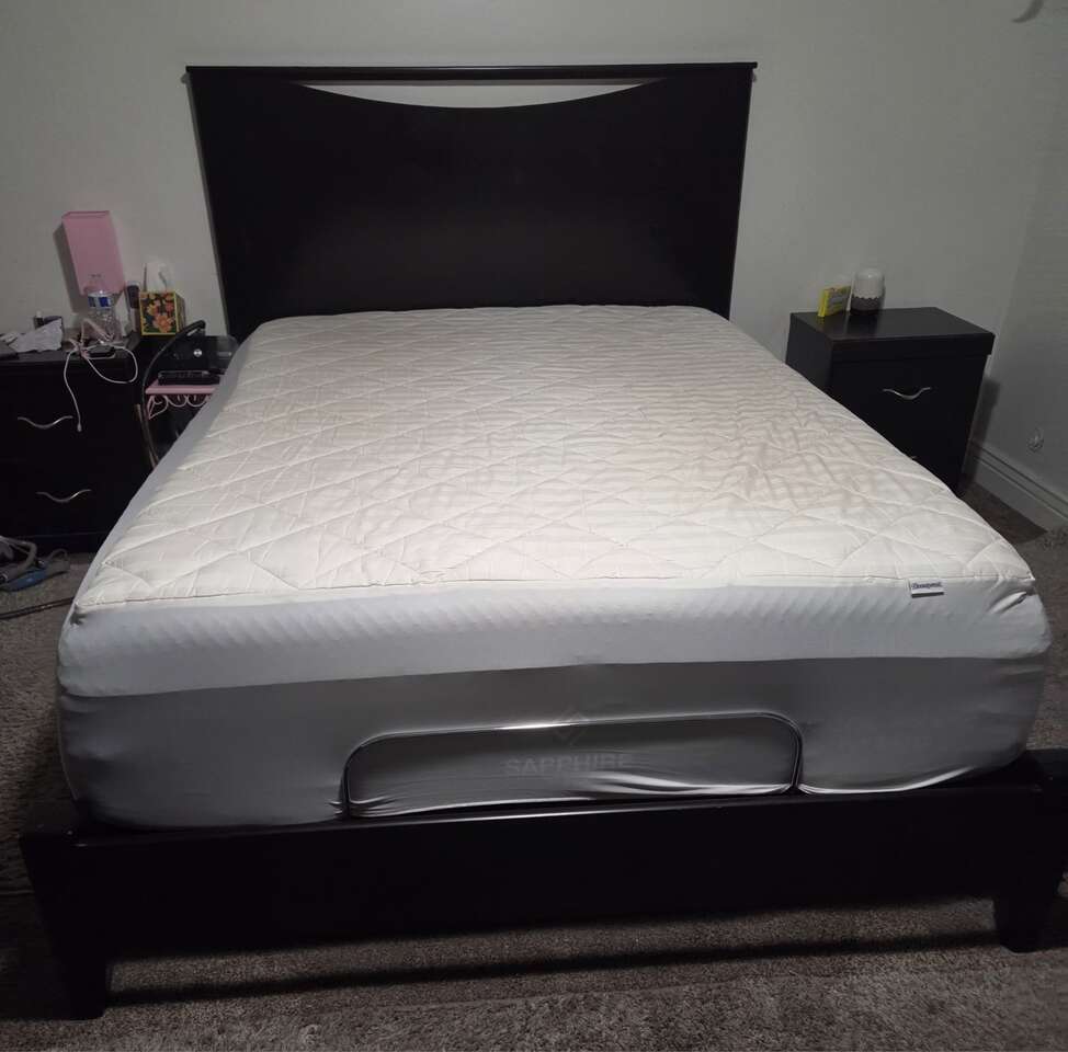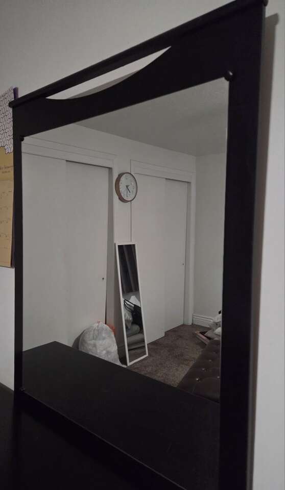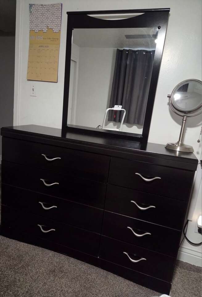 Comes with head and foot board, dresser, mirror, 2 nightstands. Color is a Merlot. In decent shape with minor scratches. From Ashley furniture. Pick up in Bountiful. Mattress not for sale and adjustable frame not include with price, will sell separately for 250. All for 650 OBO