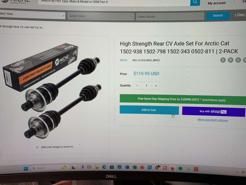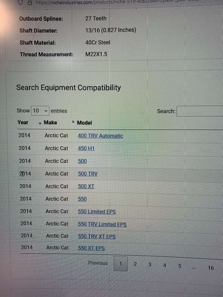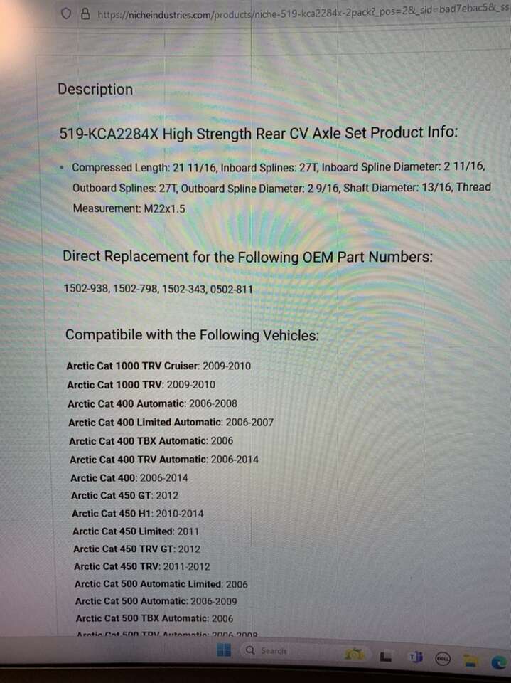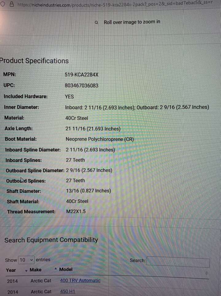 SKU K-CAX-0062_MPK2 this is a set of rear CV axles for Arctic cat machines. See pictures for details. For many 2006 through 2014 arctic cat models. These were $120 online. Asking $80.
