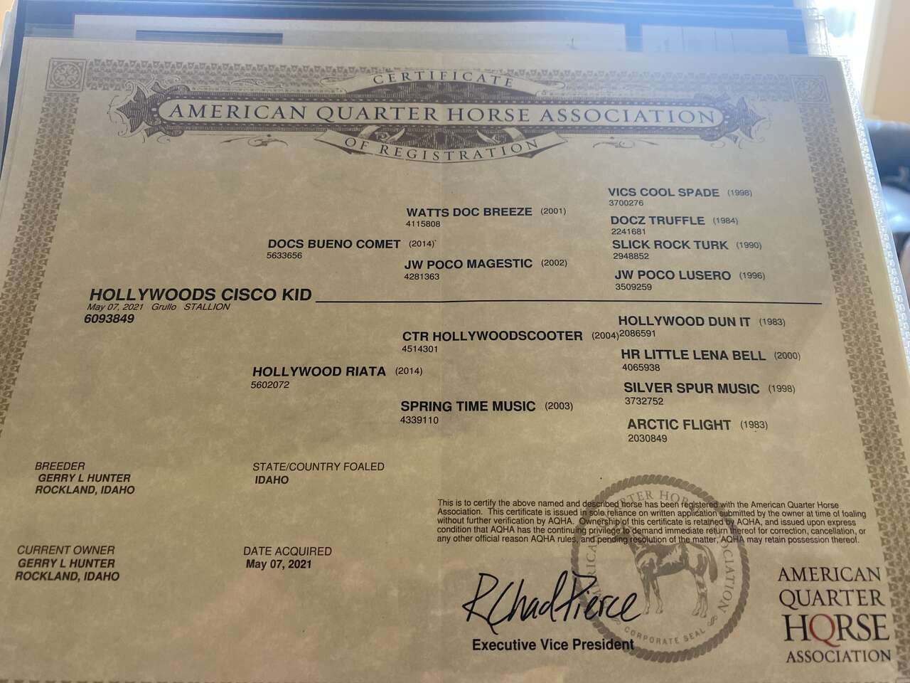 Out of a Hollywood Dun It bred mare. 6 panel tested negative. This guy is gorgeous! Homozygous for the black gene. See us on facebook at Hunter Paint and Quarter Horses. Thanks