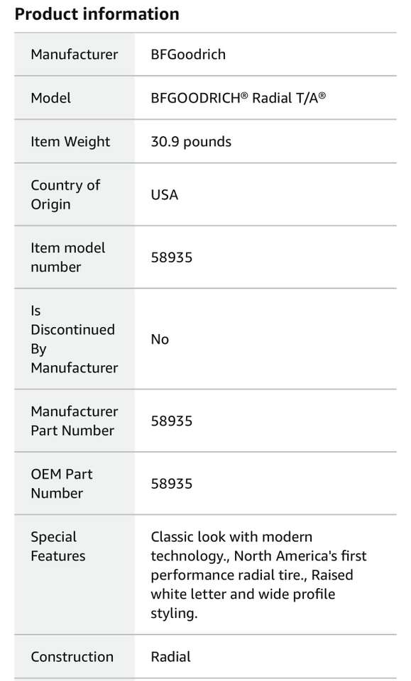 Manufacturer- BF Goodrich