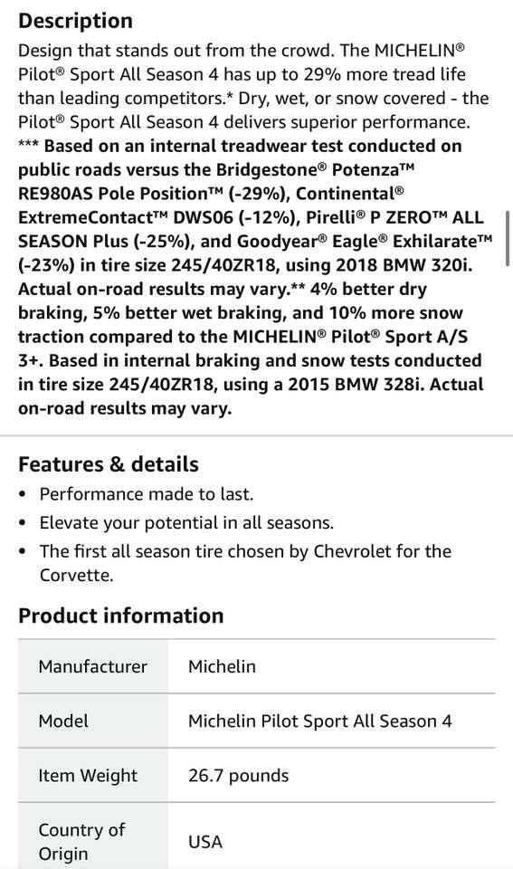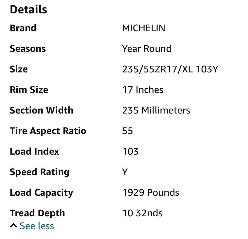 Description- 235/55ZR17/XL Pilot Sport all-season extra load radial tire. See photos for more product information and specifications.