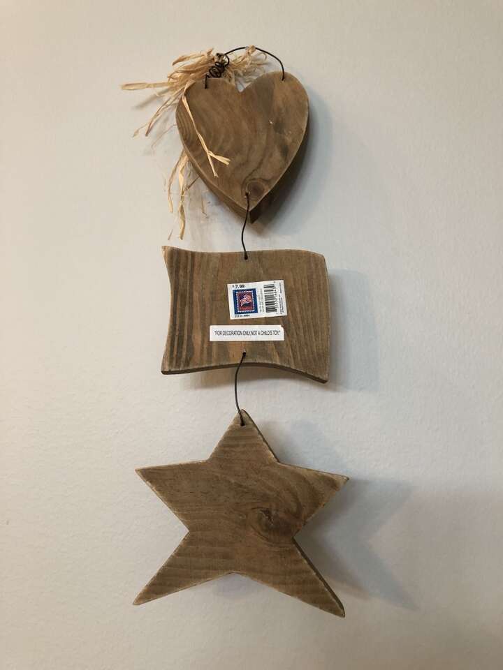 This is a 4th of July Americana wall or door hanging from Target. It is made out of wood. Comes from a smoke-free home. Thanks for looking!