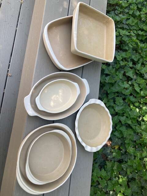 Pampered Chef Stoneware Collection..... Square Baker-$30(SOLD) Lg Rectangle Baker-$35(SOLD) Lg Deep Dish Round Baker w/ Small Round-$35 for both Pie Dish-(SOLD)$25 Lg Oval w/small oval- $35 for both Located in East Sandy
