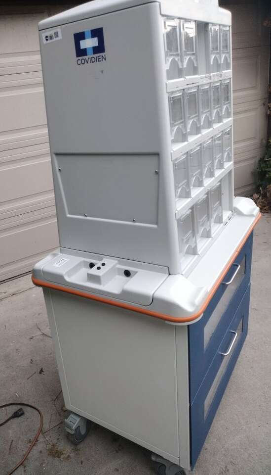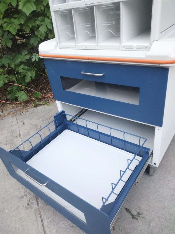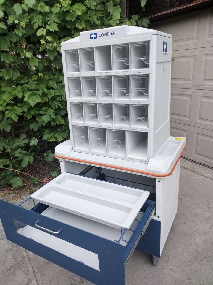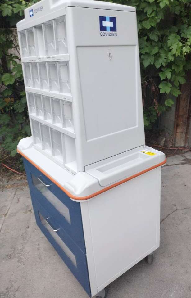 Medical supplies cart on locking casters