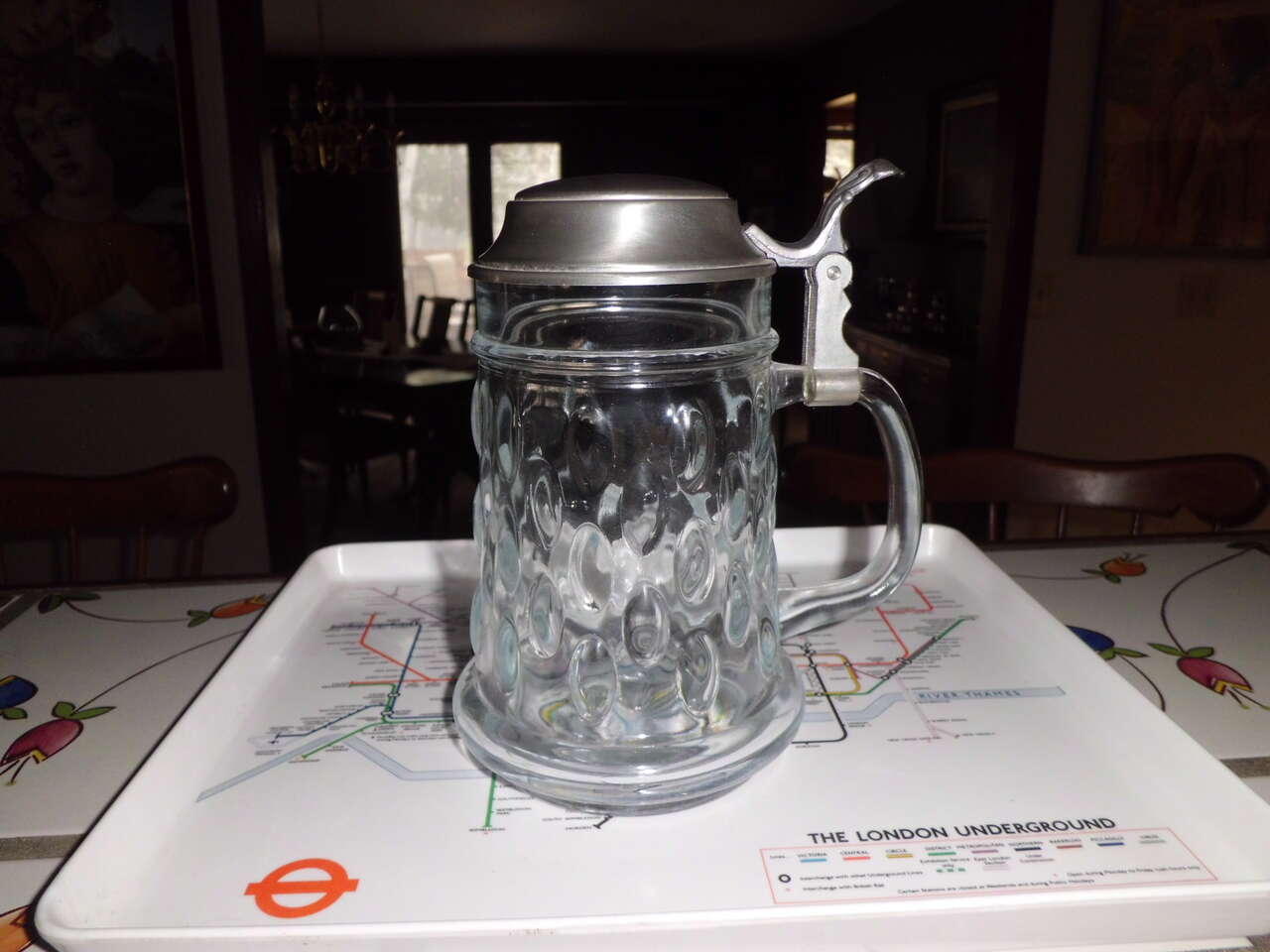 Thumbprint Glass Beer Mug w/pewter lid @ $20