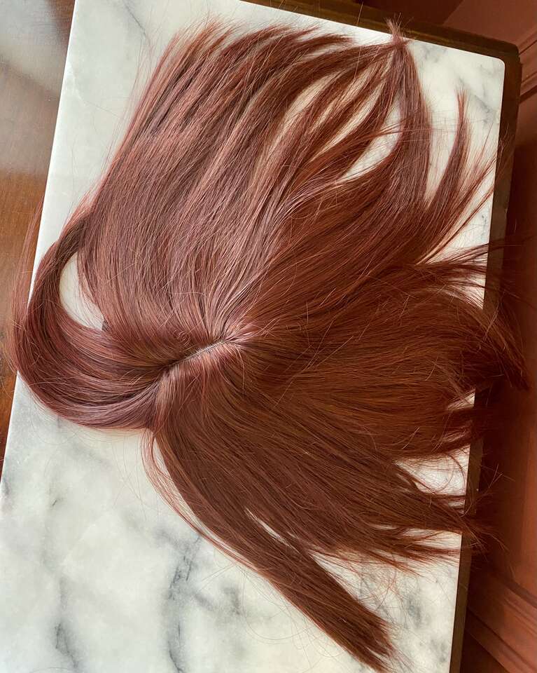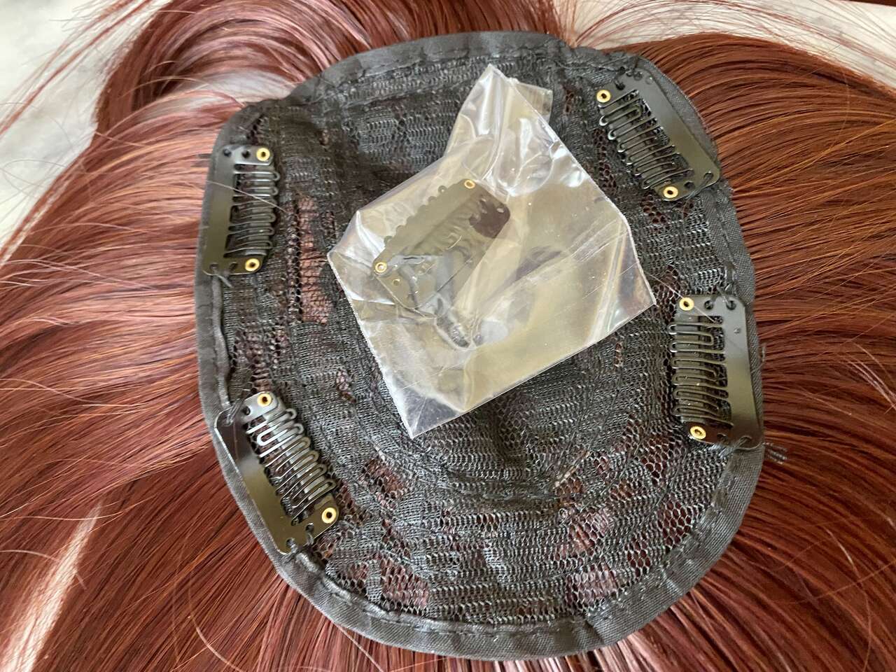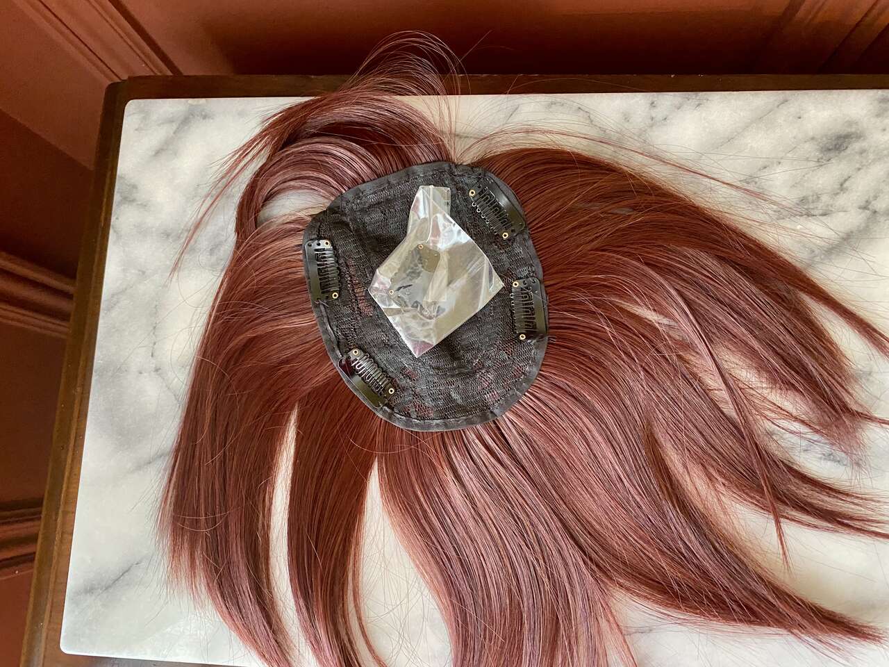 NEW - Burgandy Real Hair Topper - Never Tried On, Styled, or Worn - Great Hair Topper - C PIX . I have this one and a blonde one with no bangs.