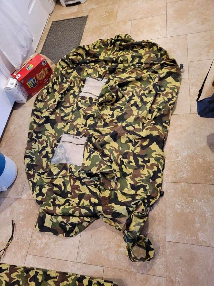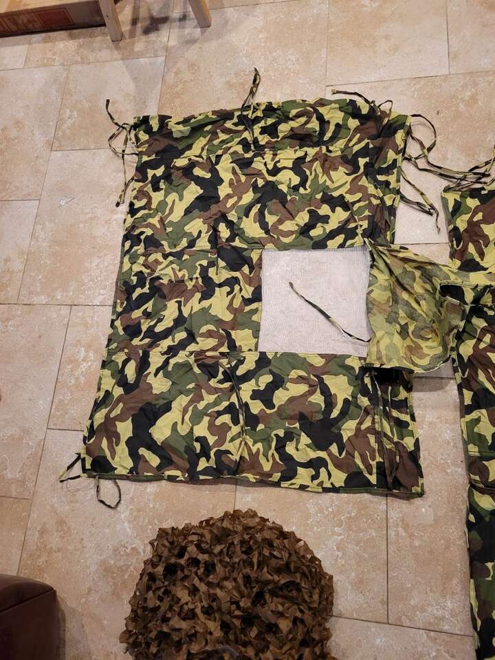 Coffin cover and kennel cover coffin you lay in hunting ducks or waterfowl kennel cover just gives the dog a place to be hidden. The camo mesh good for overhead cover background breakup or making ghillie suits. Comes with a camo bag.