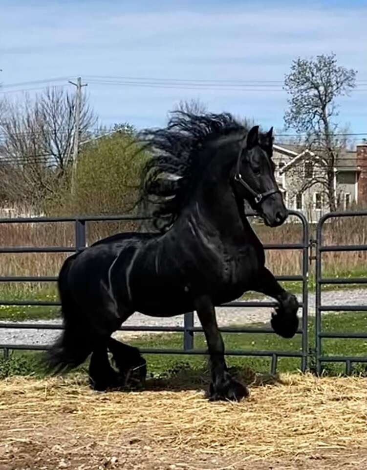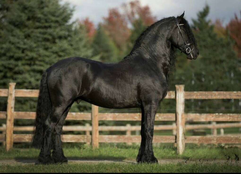 Imported from the Netherlands, Standing at Stud. He stands at 16.2 hands with a solid build, beautiful mane and tail, beautiful movements and well behaved temperament. He gives off beautiful offspring who inherit beautiful friesian movements, long mane and tail and well mannered behavior. You won’t regret breeding to him. Live foal gauranteed. FHANA Registration applications can be given for purebred foals. Foals can be registered through Friesian Heritage Horse FHH registry as Friesian crosses (as long as Dam is registered) or Purebred Friesians. Last 2 pictures are of 1 of his purebred offsprings. Live Cover & Frozen Semen Available.
