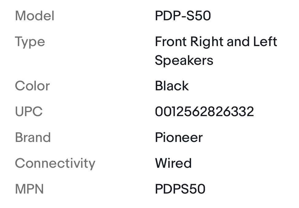 Brand new pair of Pioneer PDP-S50 TV Speakers. It comes with mounting brackets! They are in excellent, in new & never used condition. But it doesn’t have the original packaging box.