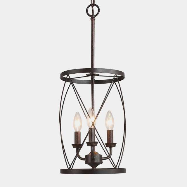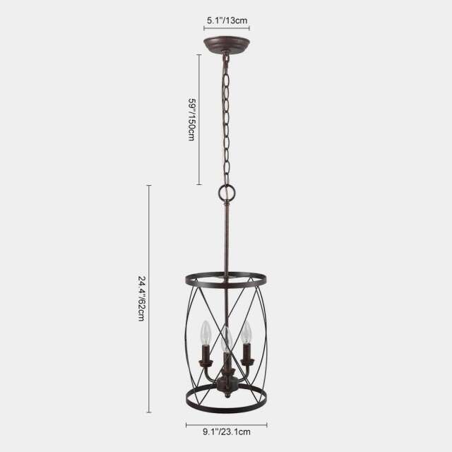 Description- Industrial rustic 3-light drum chandelier. Perfect for your entry, above your dining table or over your bar. See photos for more product information and specifications.