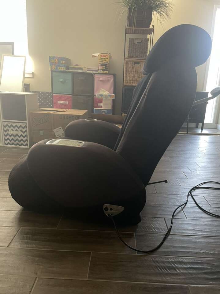 A lightly used black massage chair in great condition. Has many settings and modes to fit your personal needs. Measures about 33 inches wide and 41 inches tall. New versions of this same product are selling for ~$500.