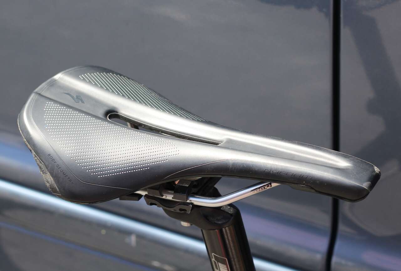 Stock saddle upgraded to a 143mm Specialized Phenom Expert saddle... which is a fantastic $150+ saddle that is light and stiff and comfortable.