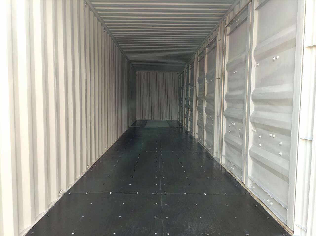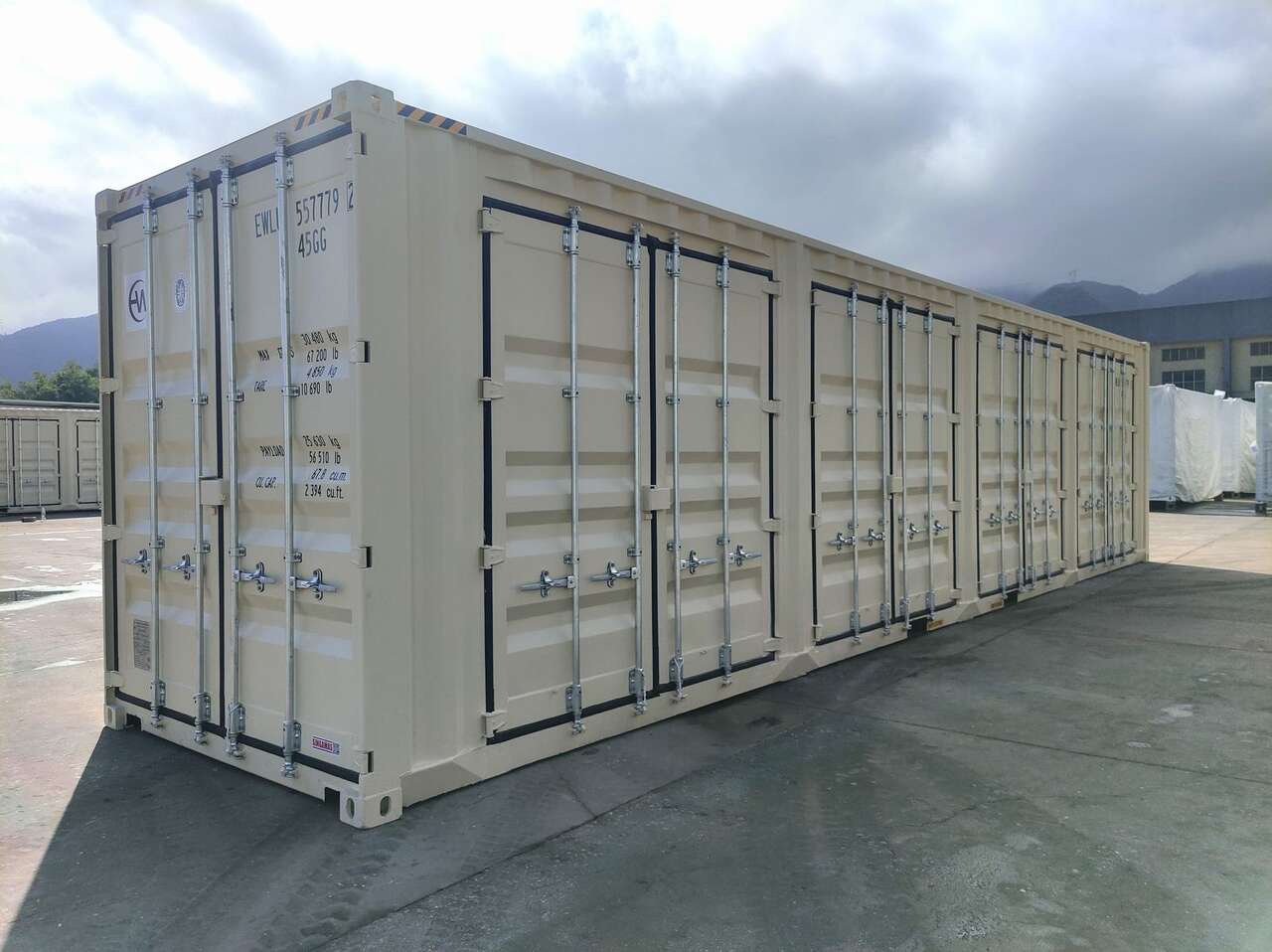 ZelleThis here is the ultimate container! Five sets of doors are on this container, 1 set on the end and 4 sets on the side for maximum accessibility to your stuff. It measures 40' long x 8' wide x 9' 6" tall. Every set of doors seal completely to keep pests, rodents, dust, snow and water out.