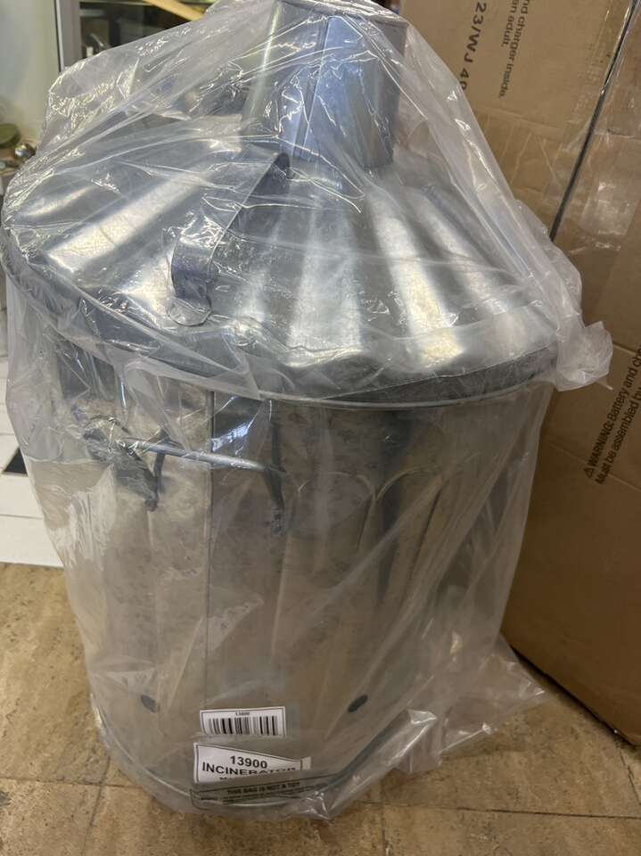 Reduce yard and household waste with our handy Garden Incinerator. You'll put less in your local landfill while reducing household and yard waste to easily disposed ashes. Modeled after incinerators commonly used in Europe, our Galvanized Garden Incinerator is a simple design with side holes for oxygen to feed the fire and built-in chimney in the removable top. Made from durable 28-gauge metal. Place it on a fire-resistant surface such as a concrete, slate or brick patio. Perfect for destroying financial and other papers, yard waste such as leaves, cut grass and more. This product is not meant to encourage new or excessive burning habits, rather to offer a controlled, manageable incineration of items you already burn. It should only to be used in compliance with local burn ordinances. Brand new Located in west valley city