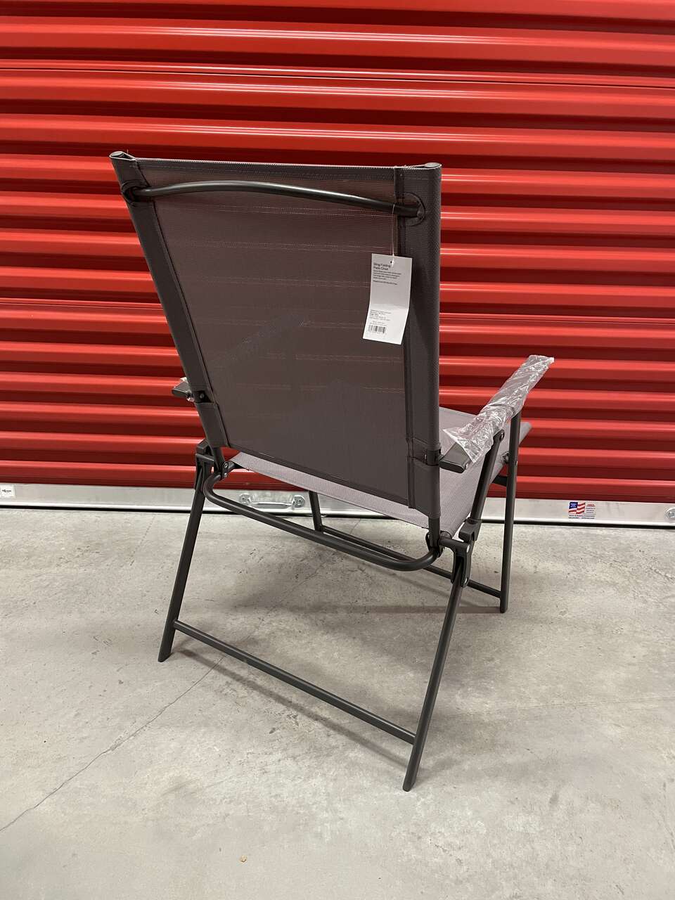 Up for grabs is a NEW Room Essentials Gray Sling Folding Patio Chair.