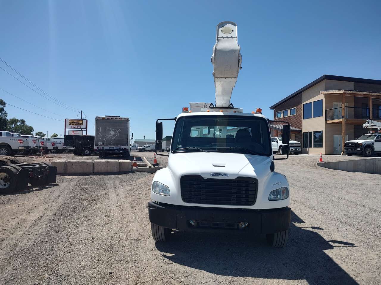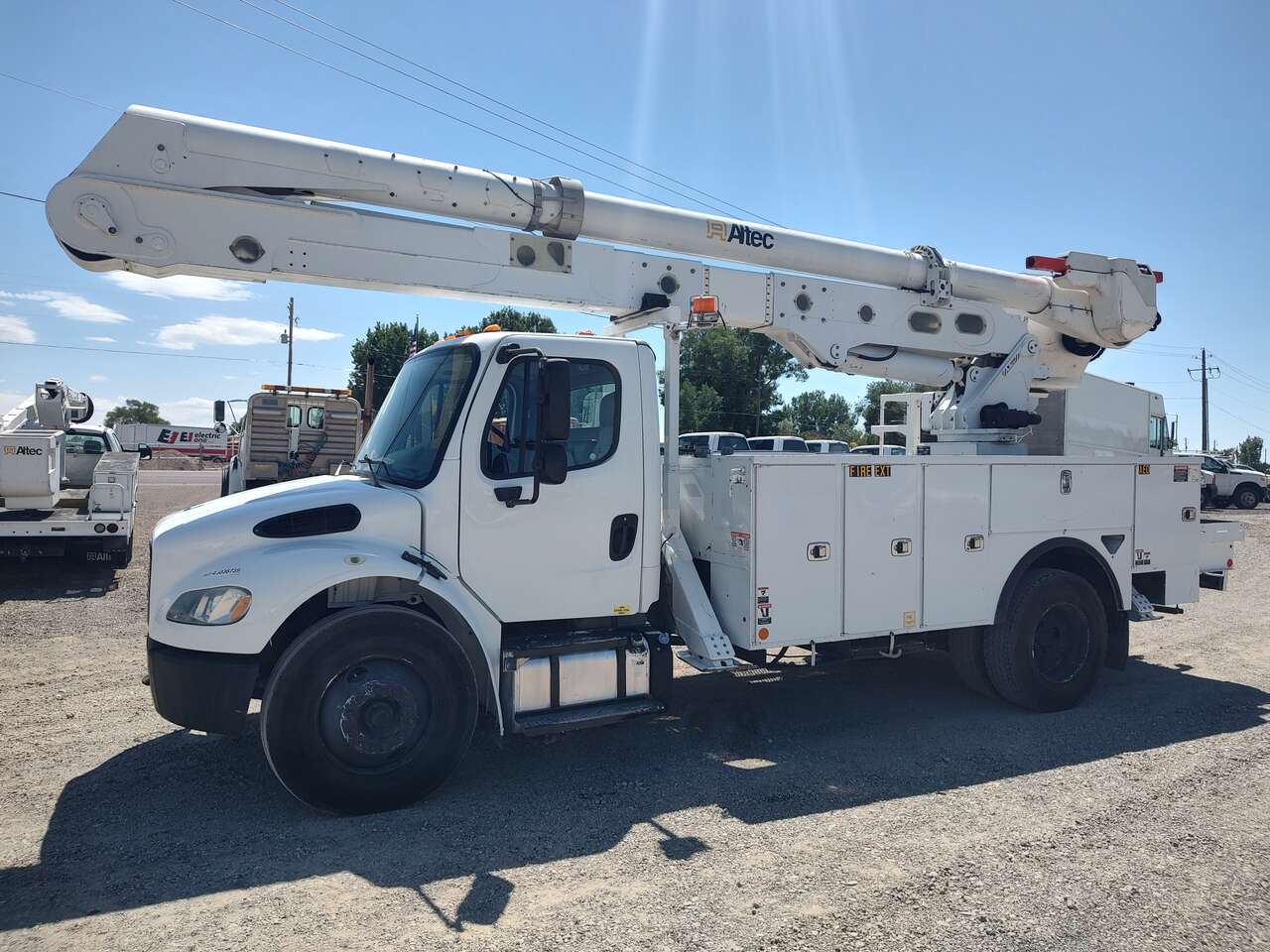 2017 Freightliner M2106 60' bucket truck, 6.7L Cummins diesel engine, Allison automatic transmission, 61,000 miles, 10,000 hours, engine brake, cruise control, 33,000 GVW. Altec AA55MH 60 foot insulated boom, two man bucket, 2,000 pound capacity jib crane, four outriggers, current inspection, good tires, former fleet vehicle 208-734-3434