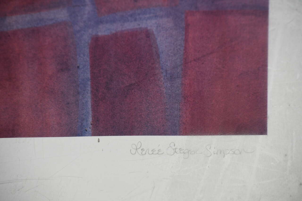 This SIGNED, NUMBERED PRINT is from a smoke free home. It is by Renee Steger Simpson and numbered 61/95. It is about 30" x 23" Including the frame. There are some light marks on the plastic that is protecting the print. Questions??? Please ask. We are located in Plain City. Cash only please.