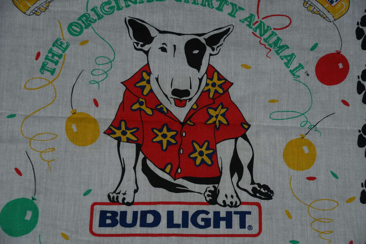 This Vintage SPUDS MCKENZIE BANDANA is about 21" x 21". It is CLEAN! Our home is smoke free. Questions??? Pleaase ask. We are located in Plain City. Cash only please.