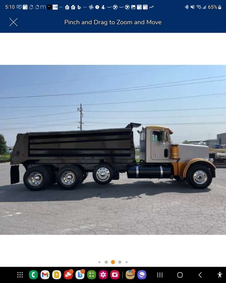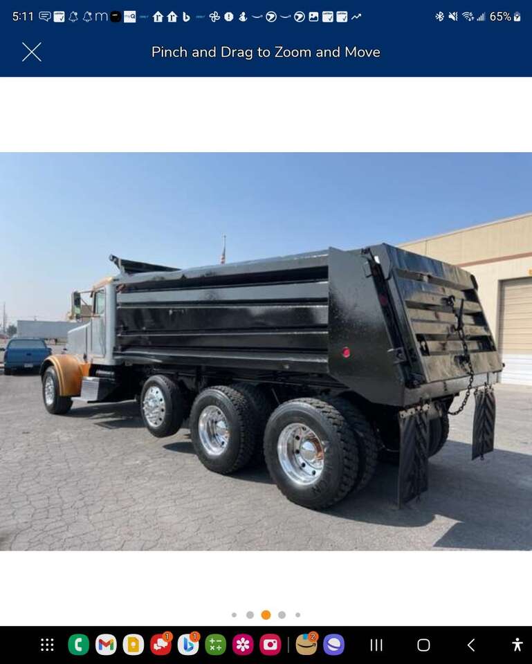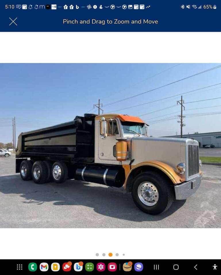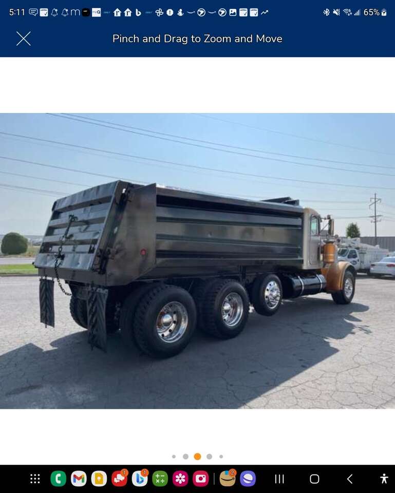 #3----- 1997- PETERBILT -379- Motor CAT C12- DIESEL- Fuller- 13 Speed- 17' Dump Bed- Miles 600k- Hendrickson Spring Suspension --46,000 lb. rears- Drop Axle 15,000 lbs.- Front 20,000 lbs. heavy spec'd dump color is GOLD and Black. A/c- Full Lockers- Priced OBO