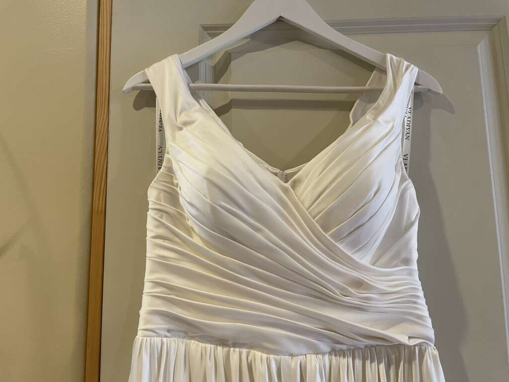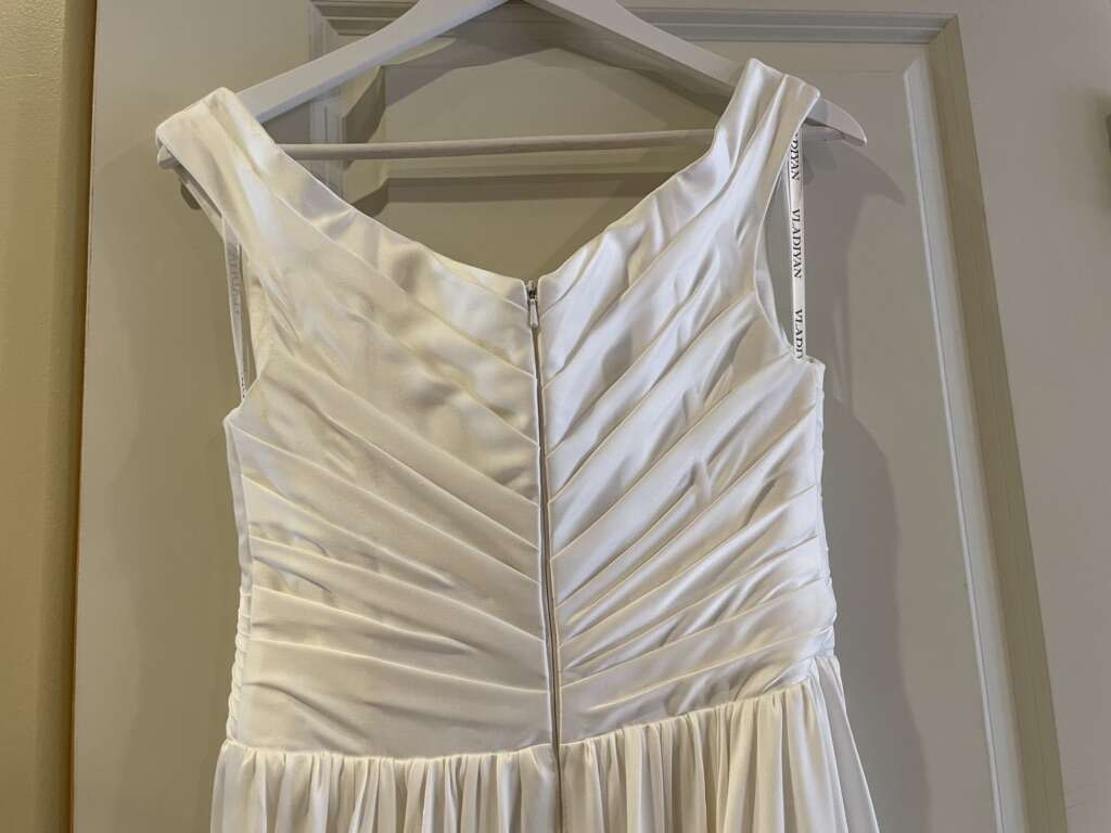 I have a beautiful brand new wedding dress by Vladiyan Royal dresses. It is from their Timeless Collection and is style 2230 if you go to their website. It is a size 6 and still has all of the tags on it. My first 3 pictures are from their site since it’s easier to tell what it looks like when it’s not just hanging on a hanger. The last picture is the description they give. They sell it for about $4000. I’m asking $800.